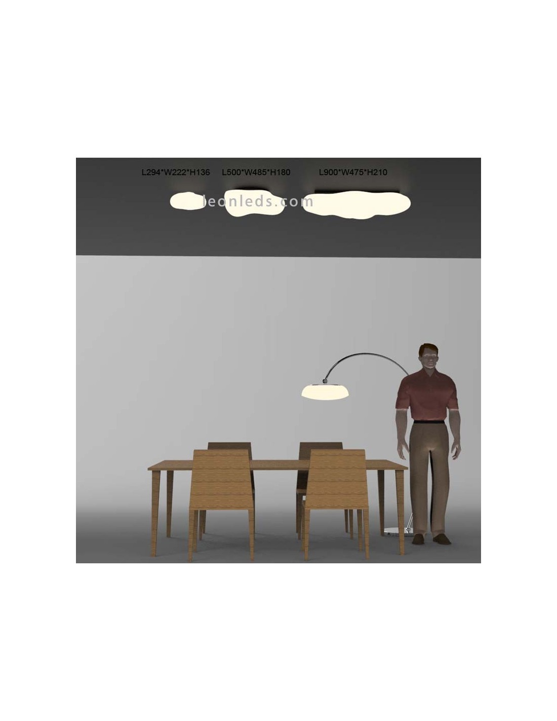 Grand plafonnier réplique de la forme des nuages série EOS pour 6 ampoules LED avec filetage E27. Ce plafonnier est fabriqué en polyéthylène translucide, qui est le diffuseur chargé d'offrir une lumière totalement homogène dans le lieu d'installation.