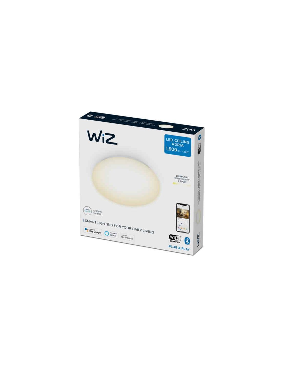 Atténuez n'importe quelle pièce (sans interrupteur sans fil !) avec le plafonnier intelligent blanc à intensité variable WiZ Adria LED. Découvrez les utilisations de l'application WiZ ou avec votre voix pour allumer et éteindre ou réduire et augmenter la luminosité de la pièce dans les paramètres Wi-Fi. C'est un produit en métal/plastique et présente les mesures suivantes : Hauteur de 6,8 cm, longueur et largeur de 32 cm avec un poids net de 0,45 kg.