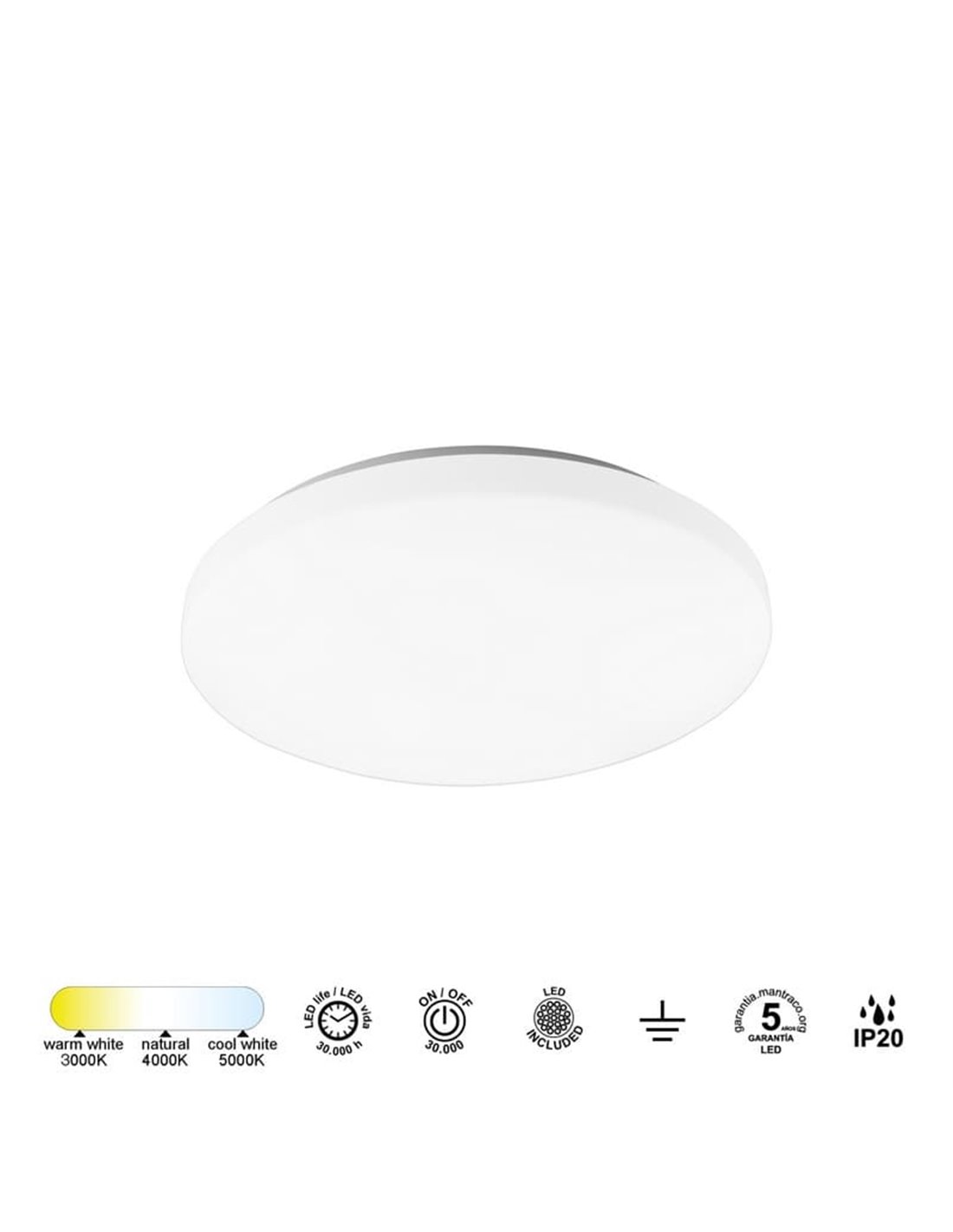 Le plafonnier LED Mantra 32W ZERO CCT est un luminaire moderne et fonctionnel conçu pour s'adapter aux différents besoins d'éclairage intérieur. Ce plafonnier vous permet de choisir entre trois températures de couleur : 3000K (blanc chaud), 4000K (blanc neutre) et 5000K (blanc froid), offrant une polyvalence optimale pour différents environnements. D'une puissance de 32W , il fournit un flux lumineux de 3 100 lumens , assurant un éclairage uniforme et efficace dans des espaces tels que les salons, les chambres ou les cuisines. Son design élégant et minimaliste, réalisé en acrylique de haute qualité avec une finition sablée à l'intérieur, permet à la LED de diffuser sa lumière de manière homogène, s'intégrant parfaitement à tout style décoratif.