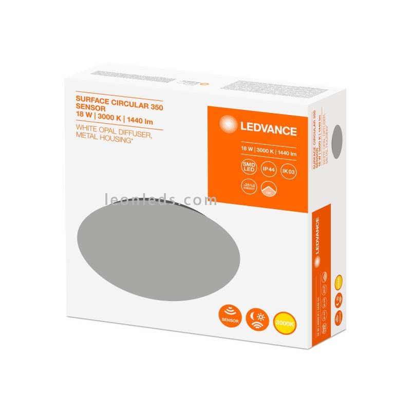Plafonnier - Applique murale LED avec capteur de présence intégré d'une puissance de 18W disponible en 2 tons de lumière, Warm Light 3000K avec une intensité de 1440Lm et Natural Light 4000K avec une intensité lumineuse de 1440Lm et un angle de faisceau lumineux de 120º.
