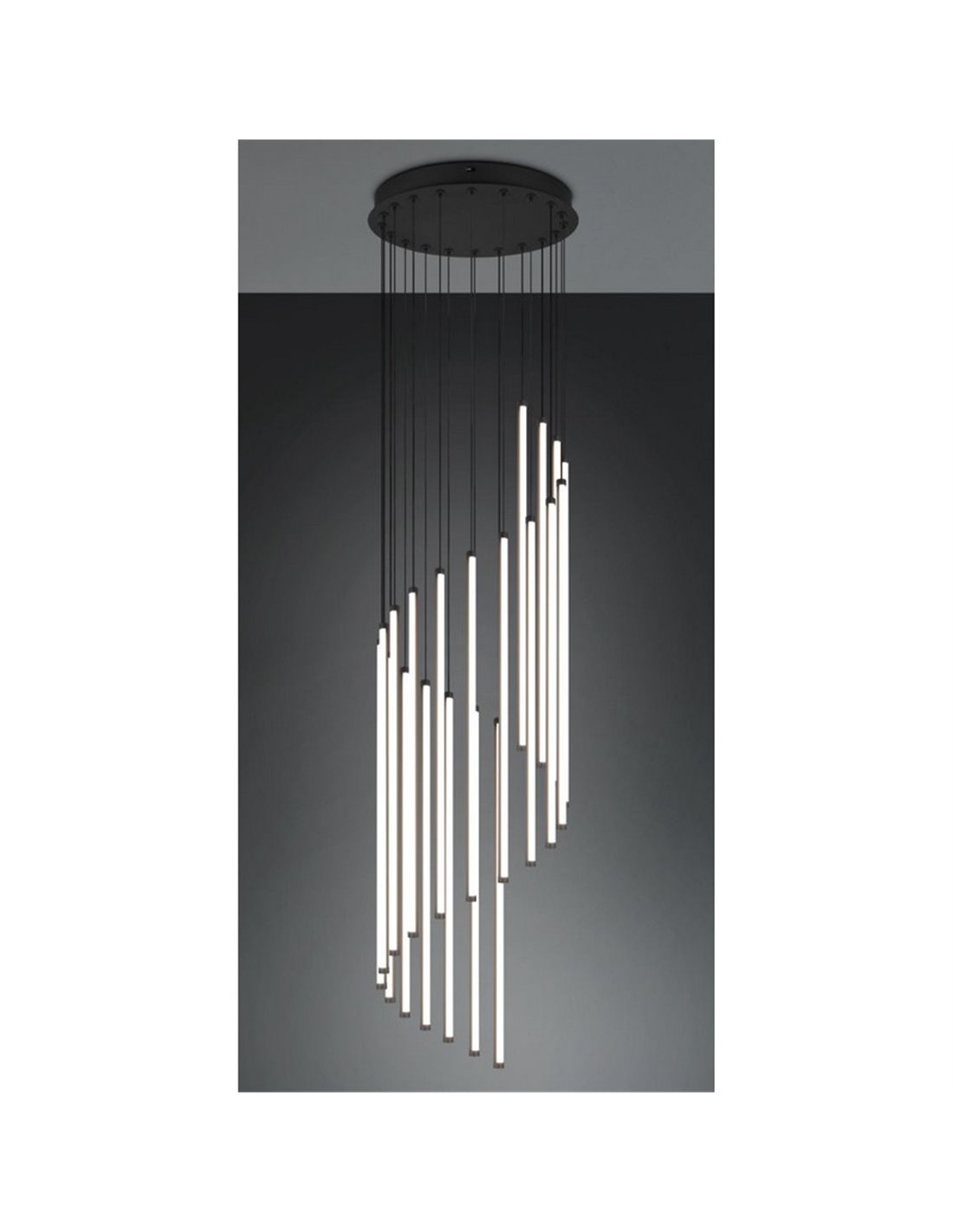Ses suspensions noires créent un effet visuel saisissant et moderne, idéal pour mettre en valeur les intérieurs contemporains. Son design vertical, d'une hauteur de 220 cm, lui confère présence et style.