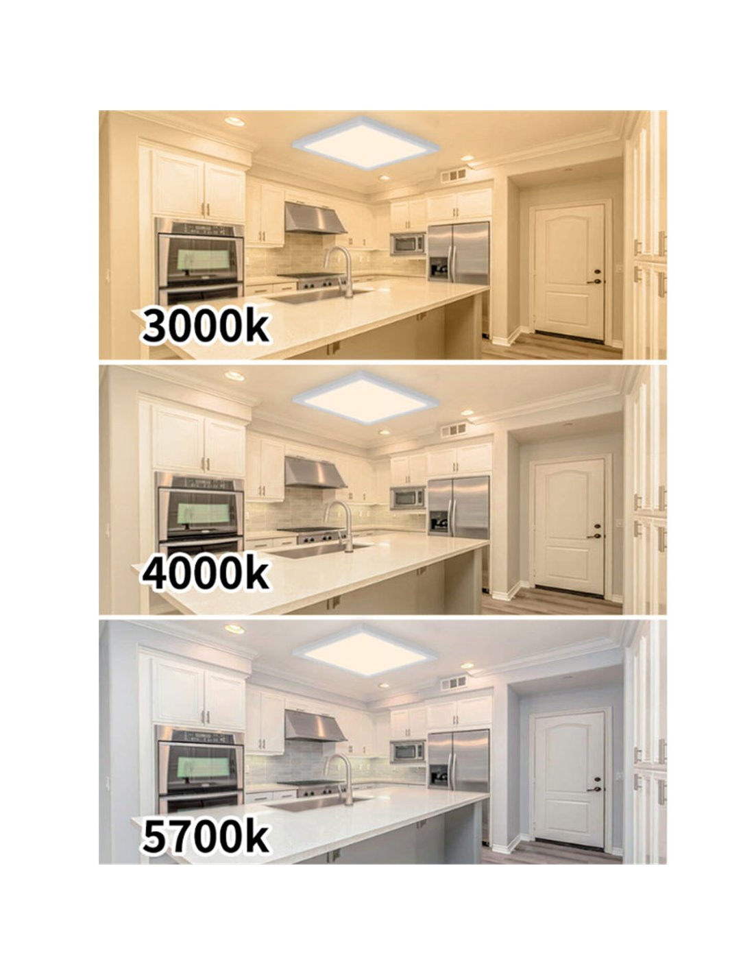 - Sélecteur de couleur avec 3 températures de lumière : 3000K, 4000K et 5700K.