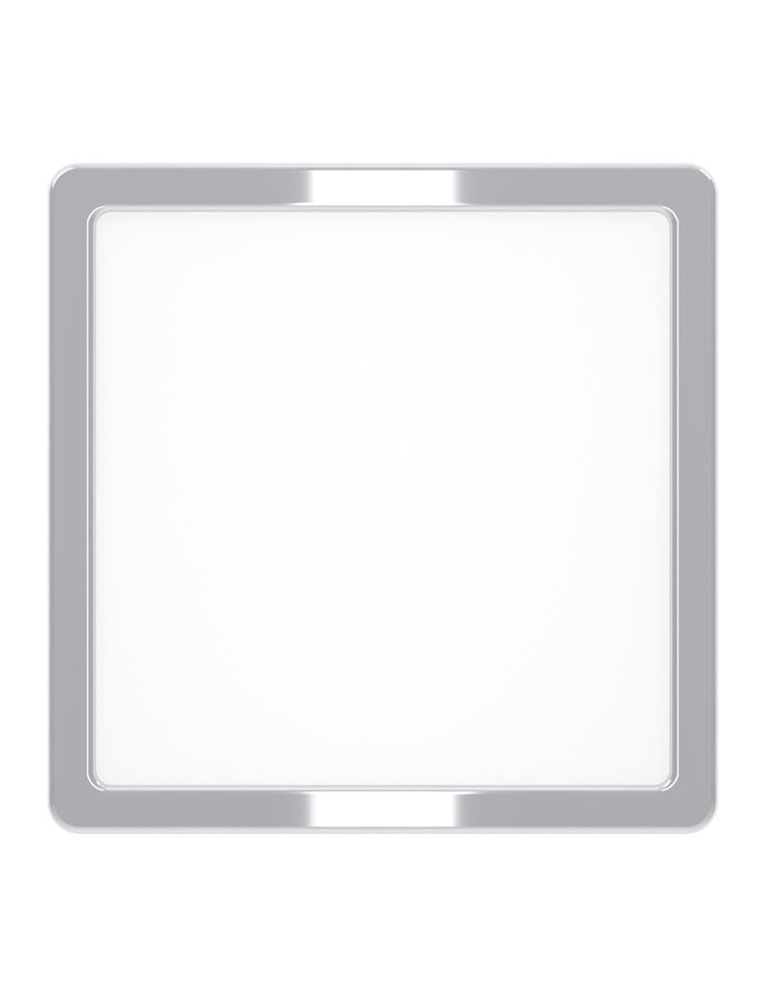 Plafonnier LED carré chromé FUEVA 6 220x220mm, 10,5W 1200Lm, CCT (2700K-4000K-6500K), IP44, spécial salle de bain . 10,5W et 1200 Lm. CCT en 3 étapes : 2700K / 4000K / 6500K. Dimensions : 220x220x28 mm. Protection IP44, convient aux salles de bain et cuisines.