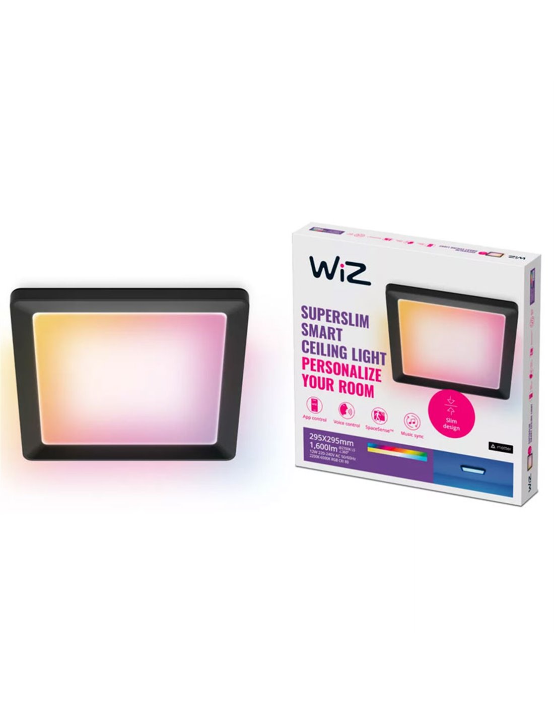 Panneau LED intelligent WiZ Ceiling SQ 12 W noir RGB blanc réglable avec contrôle Wi-Fi