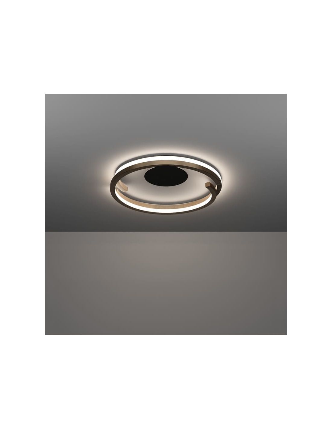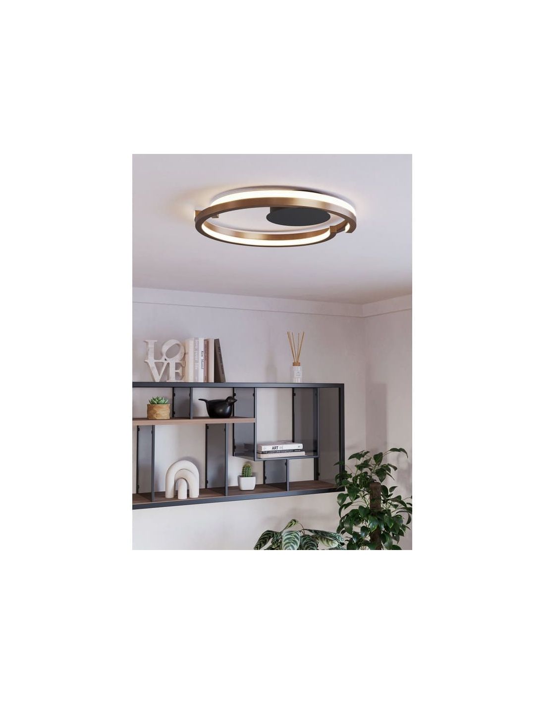 Le plafonnier LED Eglo MEZZOMONTE 901825 se distingue par son design moderne, sa structure circulaire ouverte et l'élégante combinaison de finitions noires et bronze . Son esthétique épurée et contemporaine en fait une solution idéale pour les intérieurs modernes où l'on recherche un éclairage fonctionnel à forte valeur décorative.