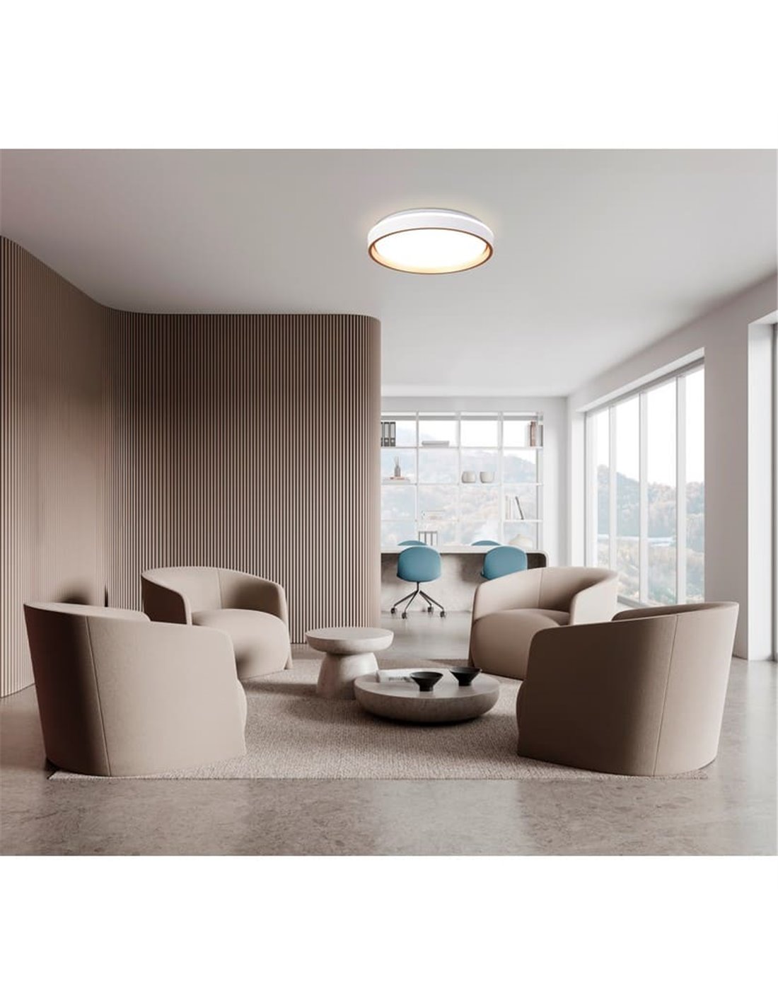 Plafonnier LED VERONA 40W dimmable en finition Blanc/Gris, réglable entre 2700K et 5000K. Elle fournit 5400 lumens de lumière et a un diamètre de Ø40cm. Comprend une télécommande pour un contrôle pratique de l'éclairage. Une touche moderne pour votre maison.