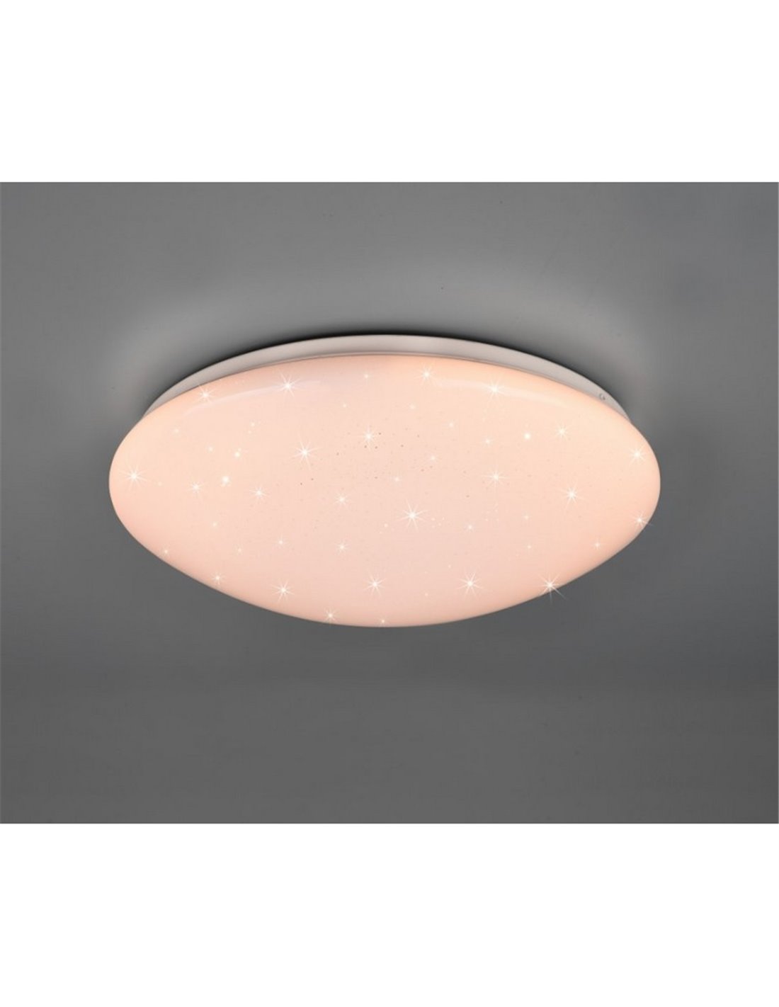 Le plafonnier LED effet étoile LUKIDA 18W 2000lm offre une plage de température de couleur réglable entre 3000K et 6000K . Comprend une fonction mémoire, une veilleuse et une protection IP20 , idéal pour les intérieurs secs.