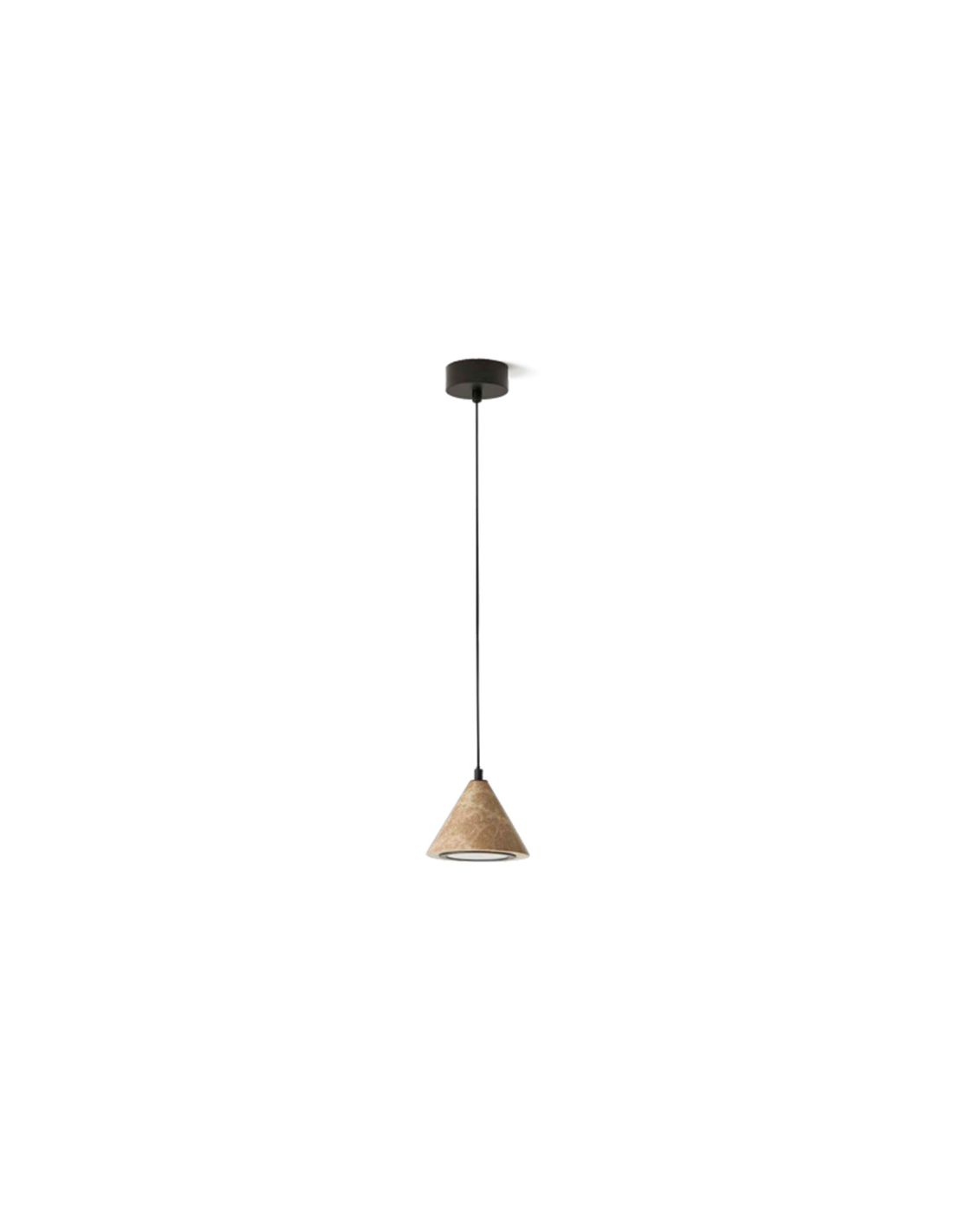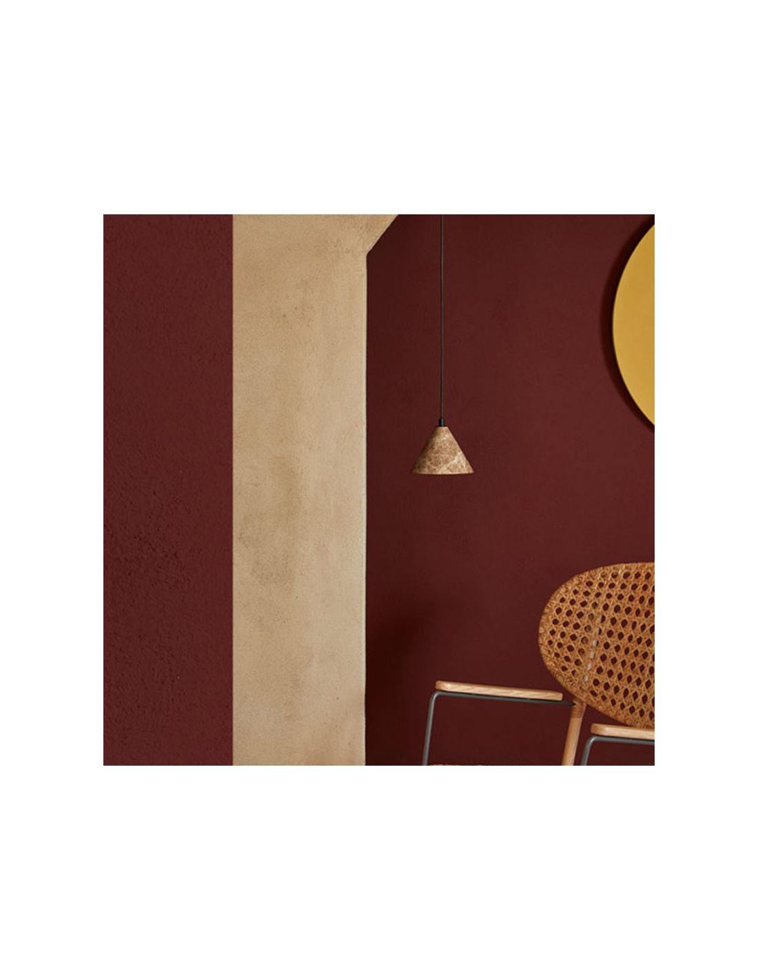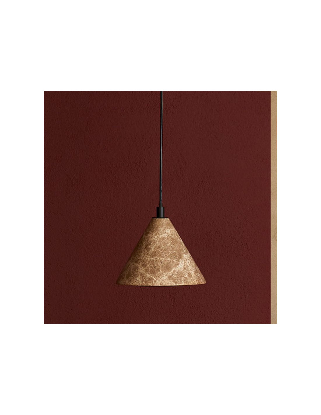 Ce modèle de plafonnier est disponible avec le câble noir, la pièce métallique en or vieilli ou noir mat et le cône en marbre dans les tons terre. Toutes ces nuances se combinent très bien entre elles et offriront un touche d'élégance et de subtilité.
