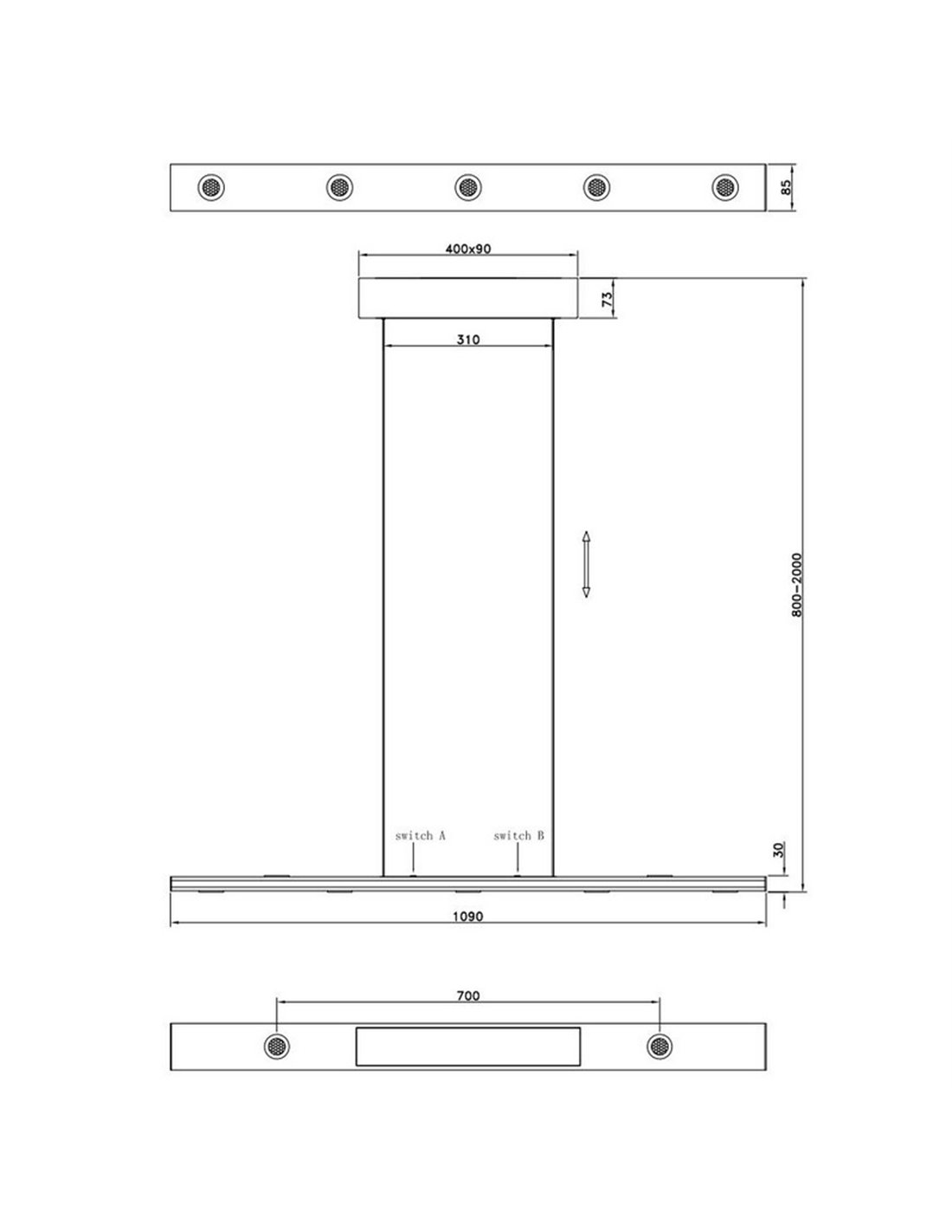 Lampe à suspension LED LINÉAIRE noire avec capteur manuel marche-arrêt 10-60 mm et...