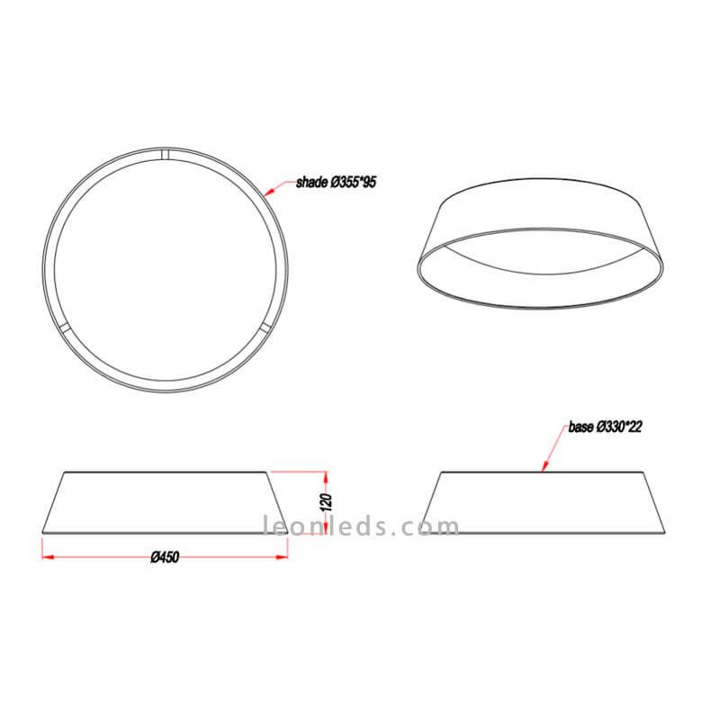 Plafonnier LED rond de la série Ponts d'un diamètre de 45 cm et d'une hauteur de 12 cm, l'abat-jour rond est gris à l'extérieur. Le diffuseur LED opaque est situé à l'intérieur du plafonnier, qui est chargé de fournir la lumière LED.