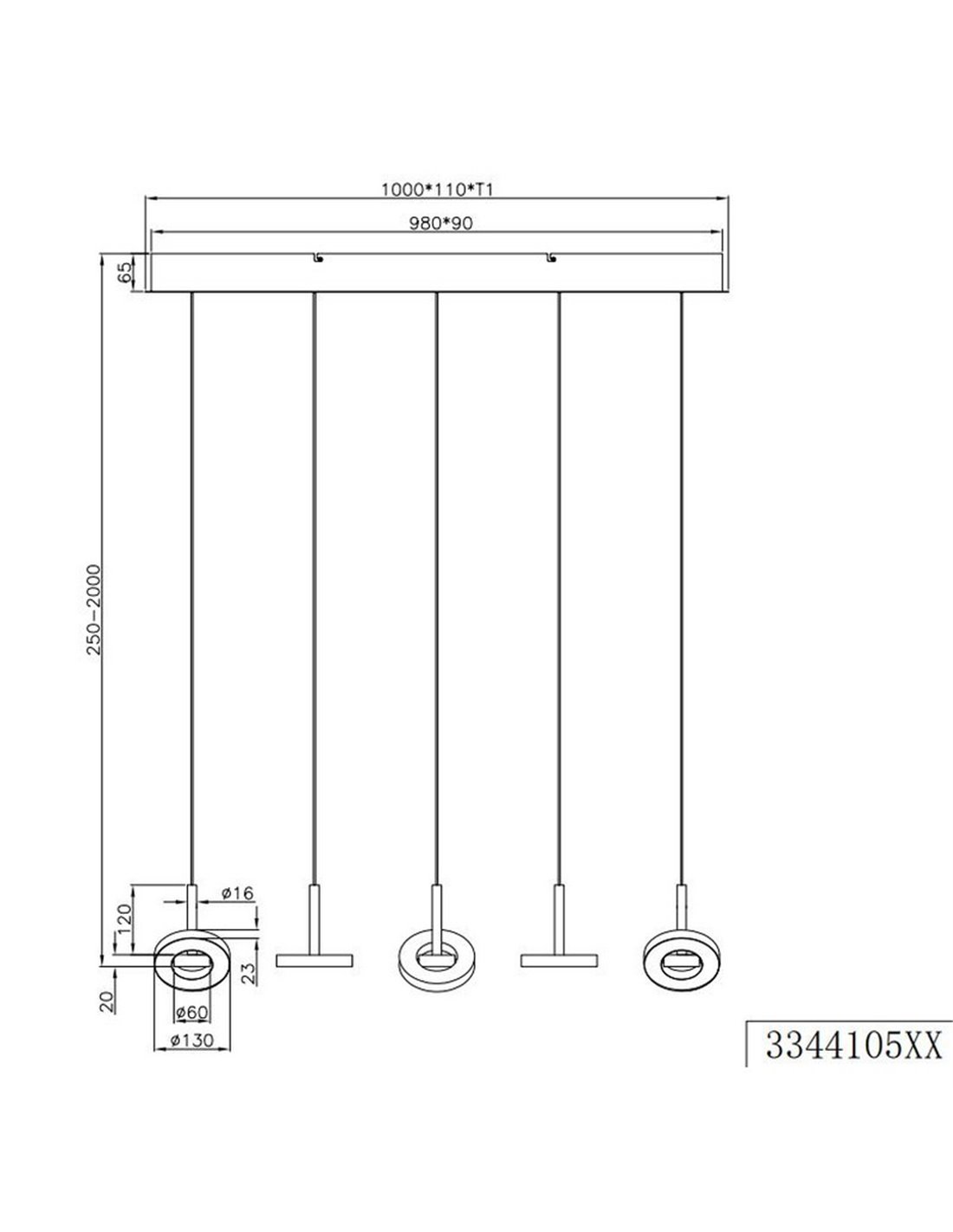 - Dimensions totales : 100 × 13 cm