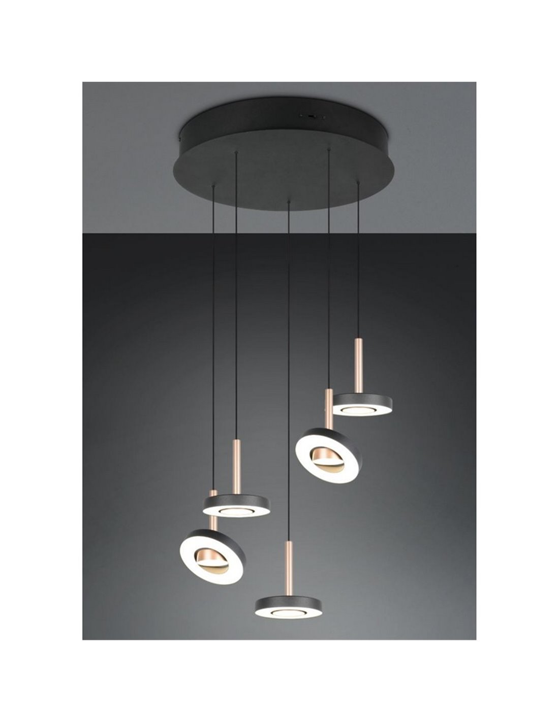 La lampe de café GUANO 5x8W allie design moderne et efficacité énergétique. Son corps en métal brun café , associé à une rosace de plafond noire , apporte contraste et élégance. Ses cinq spots LED intégrés diffusent une lumière chaude et enveloppante, idéale pour les salons ou salles à manger contemporains.