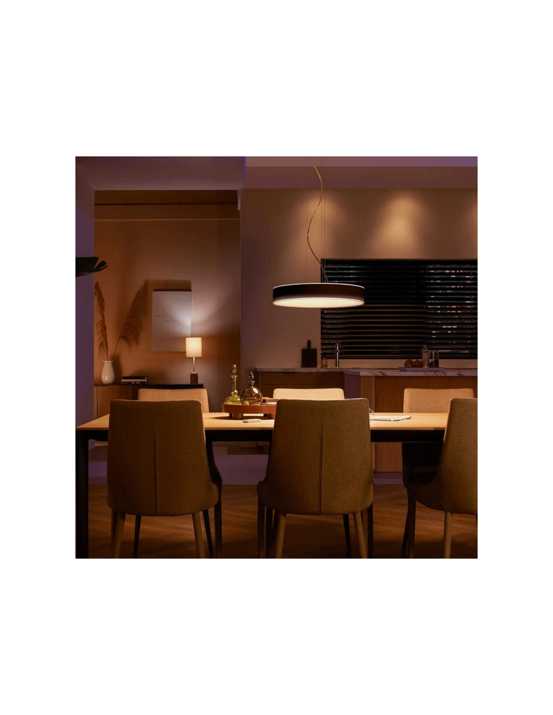 Illuminez avec une température de couleur réglable de 2 200 K à 6 500 K avec Hue White Ambiance , un flux de 4 300 lumens et 33,5 W de puissance maximale. Dimmable par interrupteur (inclus) et télécommande. Profitez d'un éclairage efficace qui vous ressemble.