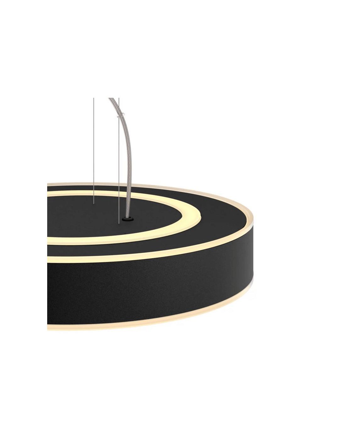 La suspension Enrave au fini noir émet sa lumière vers le bas avec une douce lueur vers le haut, ce qui la rend parfaite pour des espaces tels que la salle à manger ou le salon (IP20). Avec lui, vous pouvez jouer avec la lumière : sélectionnez le ton du blanc chaud au blanc froid que vous préférez et à distance. Il a les dimensions suivantes : hauteur de 7,2 cm, (20 minimum - 160 cm maximum), 42,5 cm de longueur et 42,5 cm de largeur.