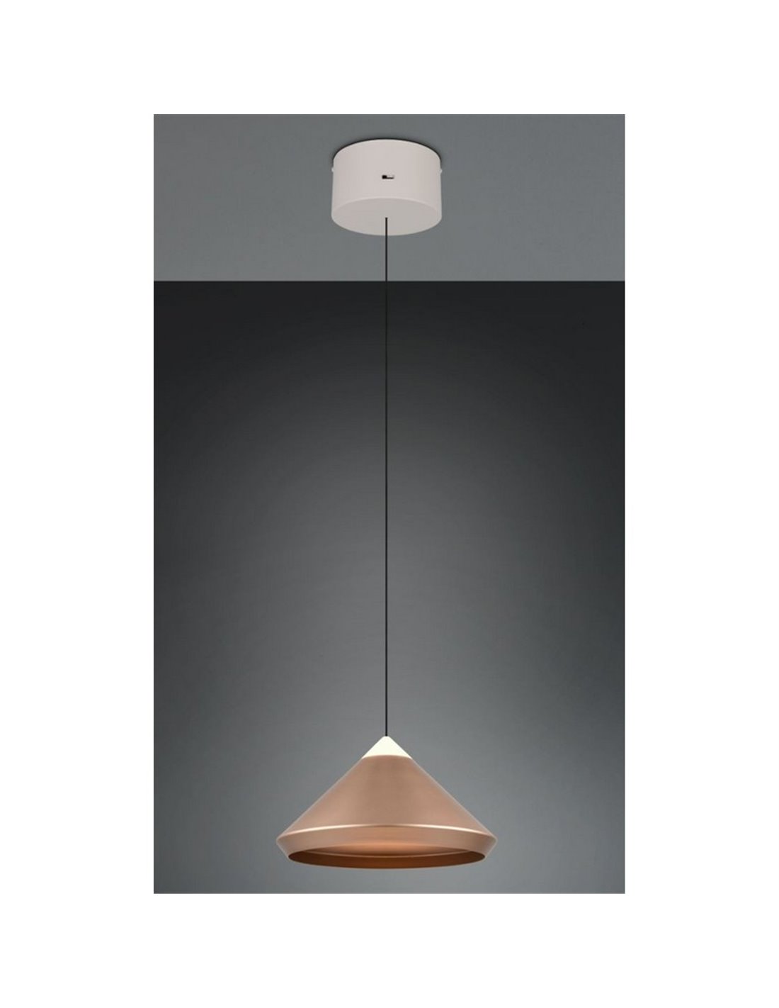 Le plafonnier LED LAGUNA 1 lumière en cuivre, Ø30 cm, est idéal pour ceux qui recherchent une suspension au style chaleureux, à hauteur réglable et à éclairage personnalisable.
