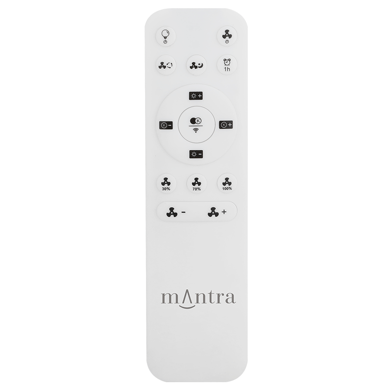 Ce mini plafonnier et ventilateur est contrôlable grâce à la télécommande incluse. Celle-ci permet de régler l'intensité et la couleur de la lumière, ainsi que le mouvement des pales, pour une puissance de 35 W.