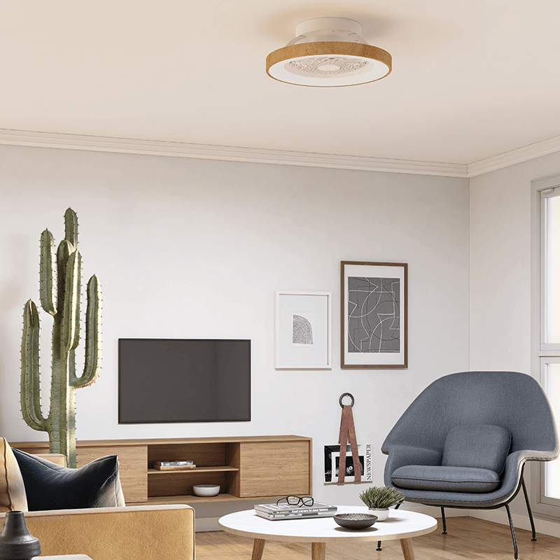 Le mini-plafonnier ventilateur LED Tibet couleur bois de Mantra est idéal pour éclairer les grandes pièces comme les bureaux, les salons ou les chambres. Sa polyvalence vous permet de combiner plusieurs modèles pour créer une expérience lumineuse plus immersive, ou même de l'associer à sa version plus grande ou à tout autre produit de la marque. Son installation est optimale en intérieur uniquement, grâce à son indice de protection IP20.