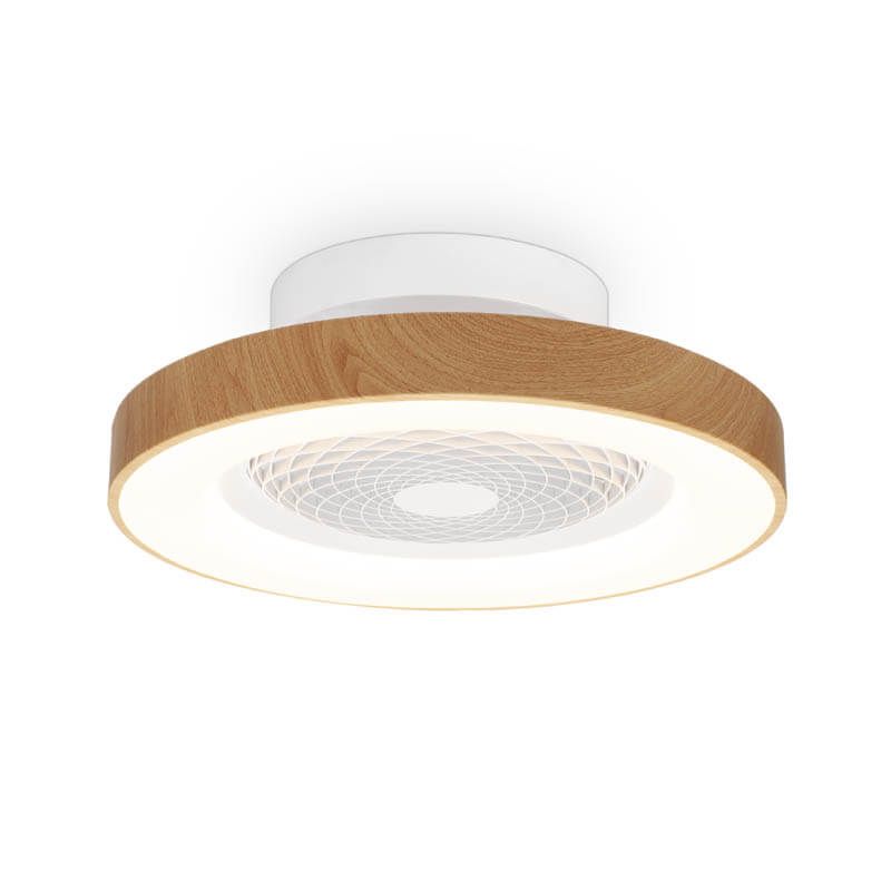 Ce ventilateur est doté de 7 pales en ABS et d'un cadre couleur bois et blanc. Les pales sont dissimulées pour une esthétique minimaliste et moderne. Ce ventilateur de plafond LED Tibet est équipé d'une lampe LED de 70 W et d'une intensité lumineuse de 4 900 lm, soit l'équivalent de plus de 300 W d'une ampoule ancienne. L'intensité et la tonalité lumineuse sont réglables. La puissance du ventilateur est de 35 W.