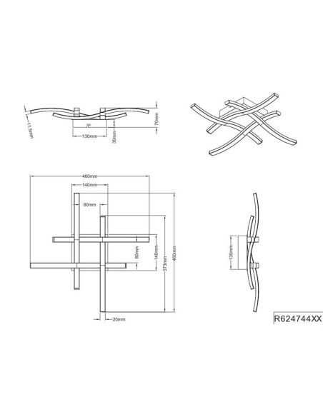 Plafonnier LED ROUTE 46x46cm 5W 4x500lm, lumière chaude 3000K IP20 Nickel mat