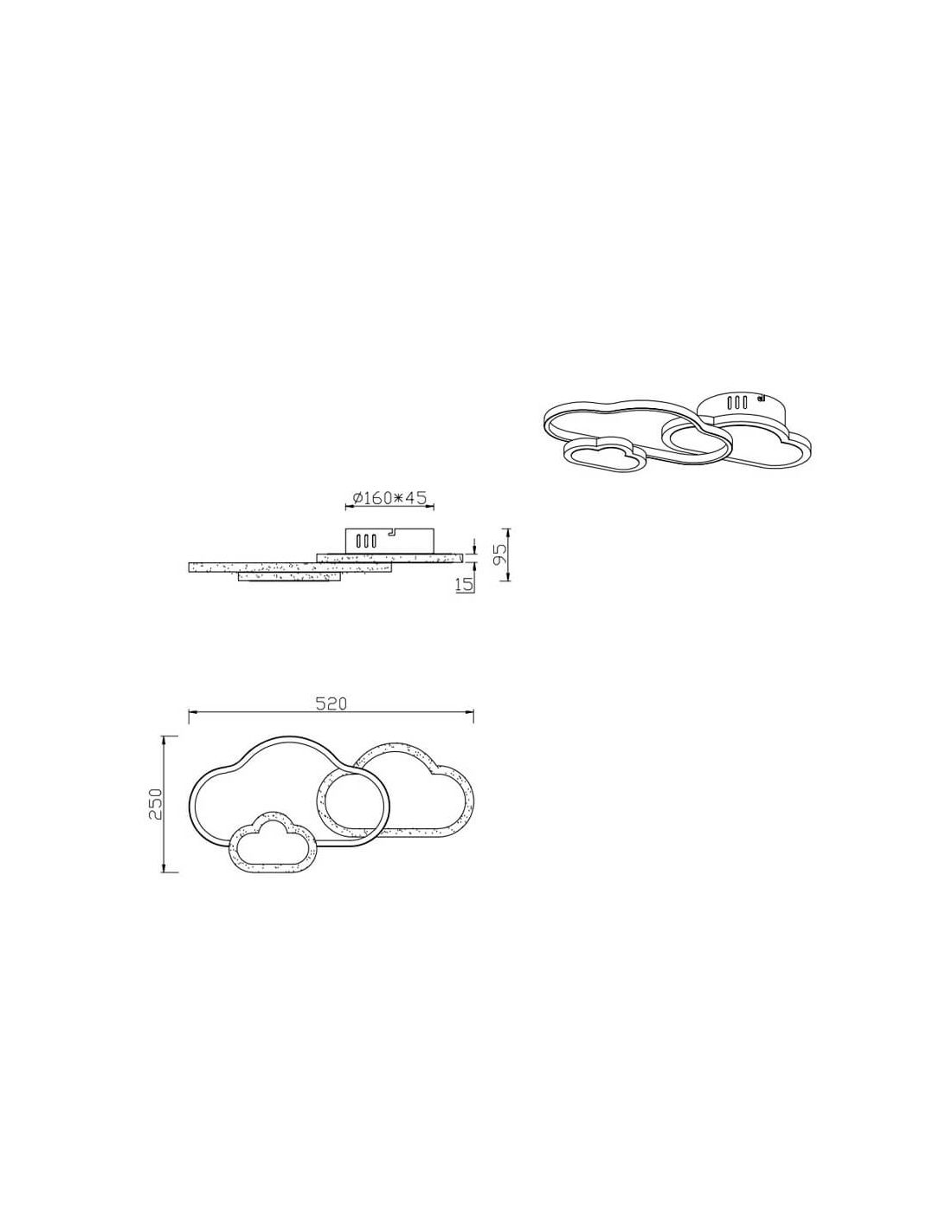 Le plafonnier Cloudy mesure 52 cm de large, 9 centimètres de haut, 25 cm de profondeur et pèse 1 575 kg.
