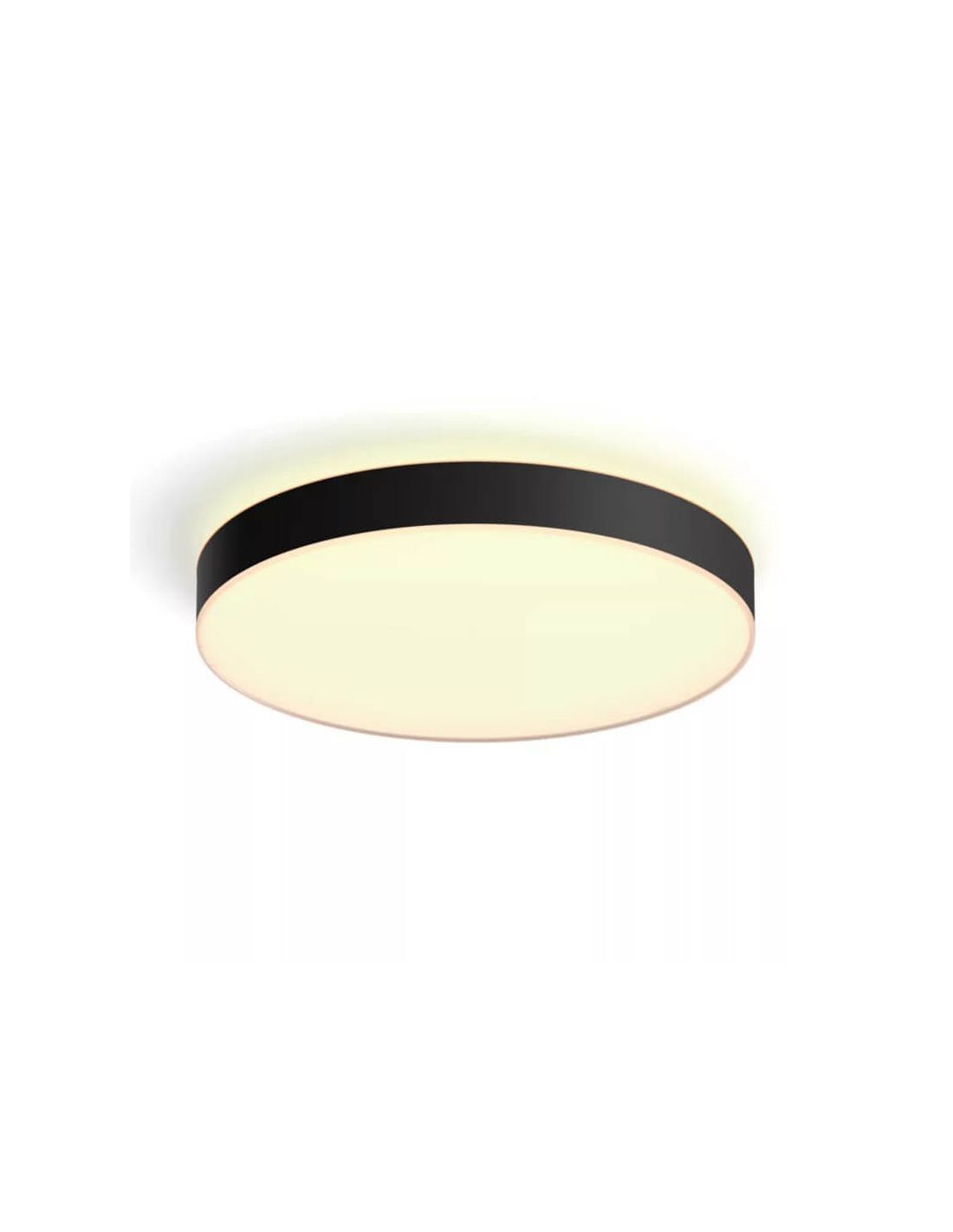 Ce plafonnier intérieur noir Enrave XL est dimmable avec l'application Hue avec laquelle vous pouvez profiter de toute une expérience, par exemple, en ajoutant de nouvelles lumières intelligentes pour les contrôler dans votre maison, en contrôlant jusqu'à 10 lumières en même temps via Bluetooth ou avec le voix (Amazon Aleza, assistants Google ou commandes vocales simples).
