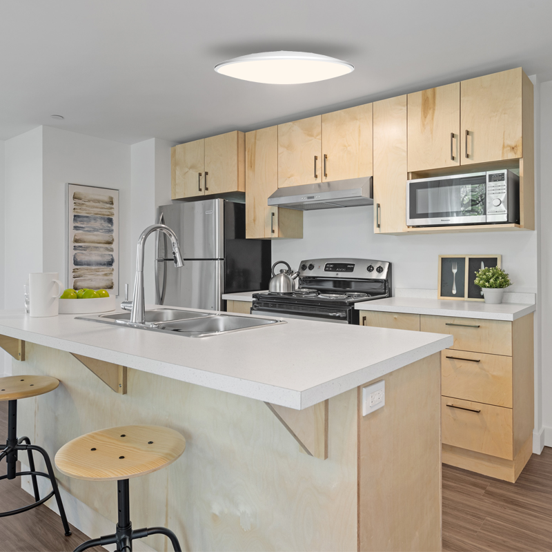 - Design ultra fin : avec un profil fin, ce plafonnier se fond discrètement dans les plafonds bas ou modernes.