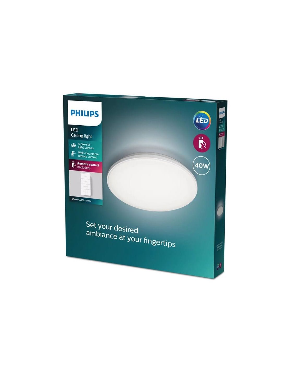 Le Plafonnier LED Rond WINCEL CL630 40W et 2500lm offre un éclairage orientable avec variateur sans fil . Contrôlez facilement l'environnement avec ses quatre scènes prédéfinies et sa télécommande, garantissant confort et polyvalence dans l'éclairage de votre maison.
