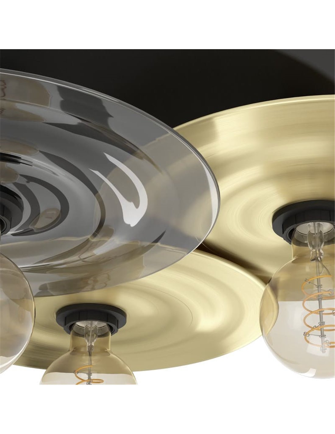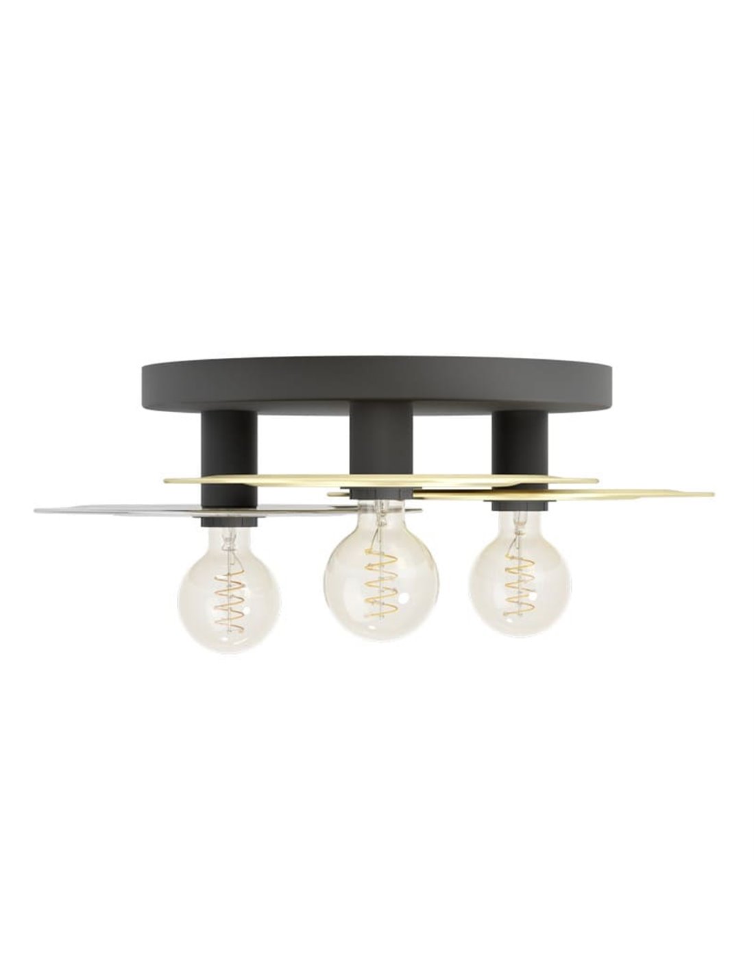 Le plafonnier LINTMILL par Eglo est une pièce unique qui combine des plaques d'acier, de laiton et de verre, créant un design sophistiqué et décoratif. Ce plafonnier est conçu pour être le centre d'attention dans n'importe quelle pièce, offrant un éclairage fonctionnel et élégant. Avec une capacité pour 3 ampoules E27 (non incluses), elle est idéale pour les salons, salles à manger et autres espaces nécessitant une lumière chaleureuse et décorative.