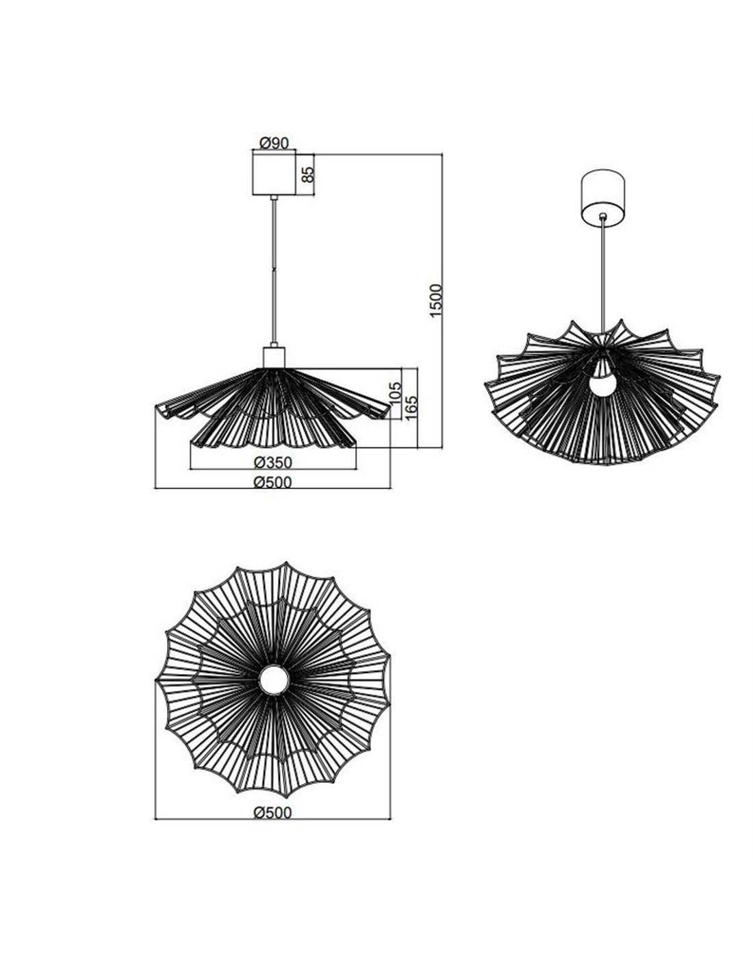 La suspension MARGARITA se distingue par son design original et sa structure en métal noir , créant un éclairage moderne et attrayant. Sa forme en éventail lui confère une touche industrielle inspirée par la nature, idéale pour les intérieurs contemporains ou bohèmes chics.
