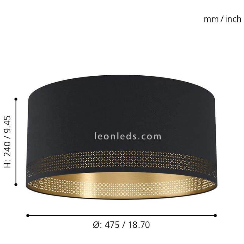 Plafonnier avec 1 abat-jour rond en tissu noir et or de la collection Esteperra par Eglo Iluminación. Il offre un style moderne et contemporain idéal pour toute pièce qui nécessite un éclairage et qui a besoin d'une touche moderne et élégante. Il nécessite l'installation d'1 ampoule avec douille E27 (non incluse). Nous recommandons l'utilisation d'une ampoule LED à filament de type Globe pour renforcer son style vintage. De préférence une tonalité chaude comme 3 000k qui rehaussera cet effet moderne. La puissance recommandée est de 10 à 17W selon les dimensions de la pièce que nous devons éclairer.