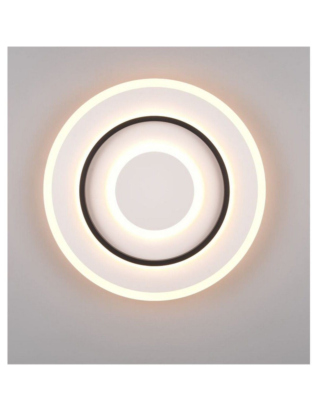 Le plafonnier LED JORA allie un design rond de 41 cm de diamètre à des finitions noir et blanc mat pour apporter une touche moderne et élégante à tout espace. Son profil ultra-fin de 6,5 cm s'intègre parfaitement aux plafonds bas ou aux ambiances minimalistes, offrant un éclairage homogène et décoratif.