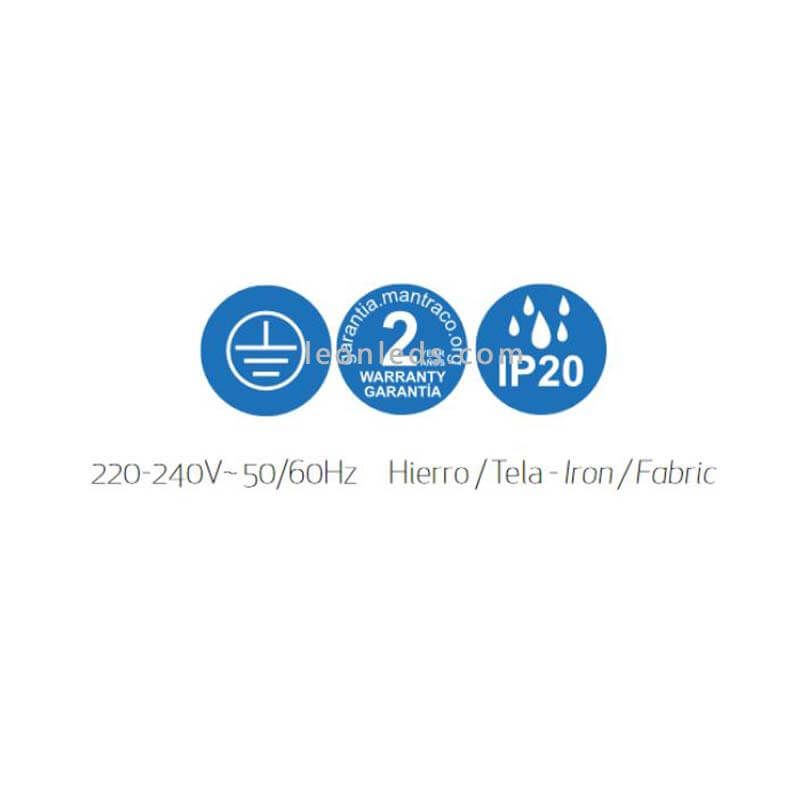 A l'intérieur de l'abat-jour, des douilles E27 sont incluses pour installer des ampoules Led au format A60/A65 ou A67 d'une puissance comprise entre 10W et 18W, et un maximum de 40W (ampoules non incluses). Nous vous recommandons d'utiliser une tonalité lumineuse Naturelle 4000K ou Chaude 3000-2700K.