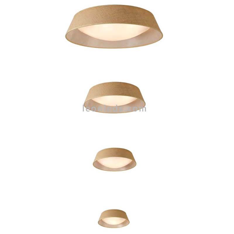 Le plafonnier rustique Sabina Series 4 tailles par Mantra est composé d'un écran textile en toile de jute marron. Il est disponible en 4 tailles :