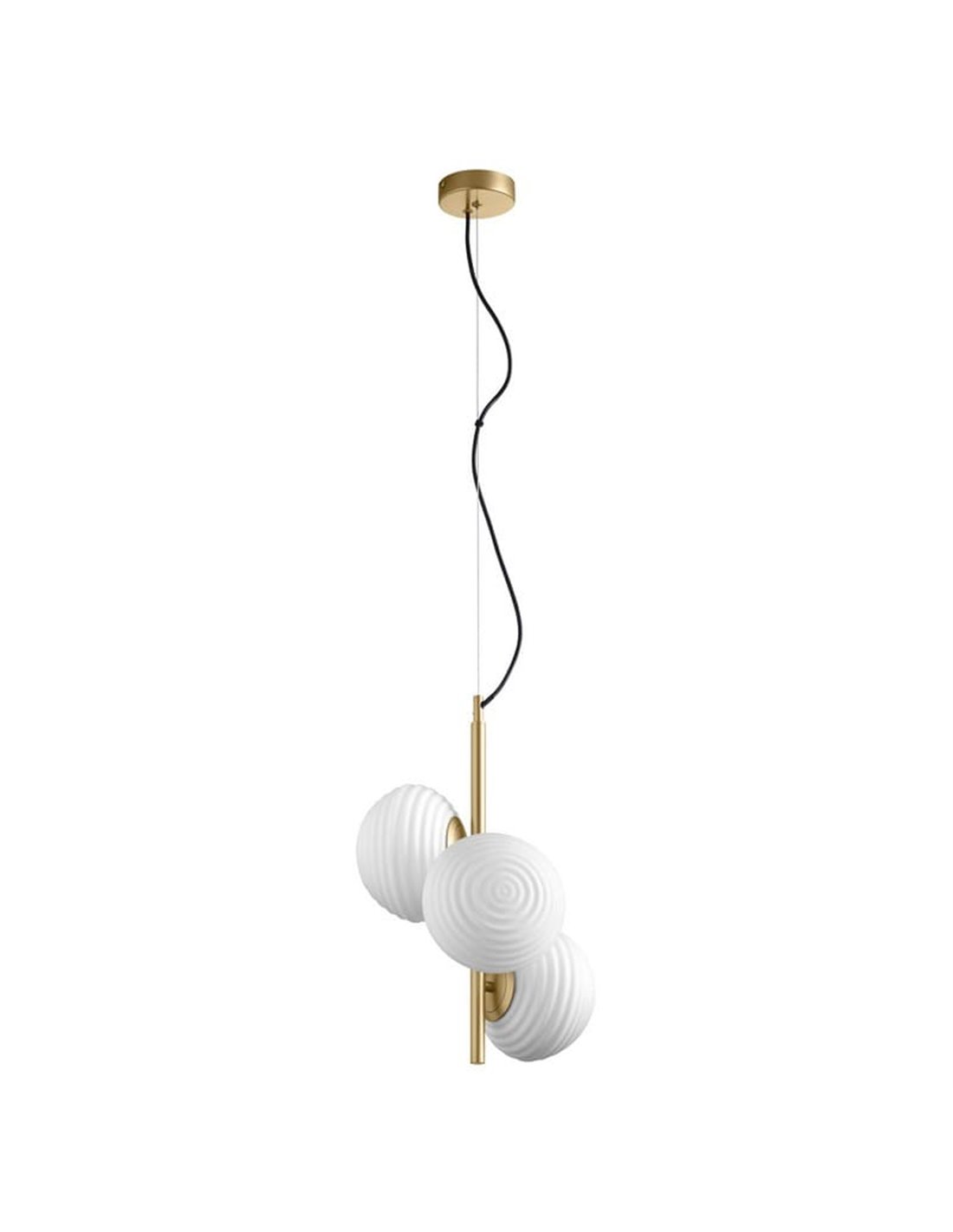 Plafonnier suspendu CIAO MBss avec 3 abat-jours ronds blancs