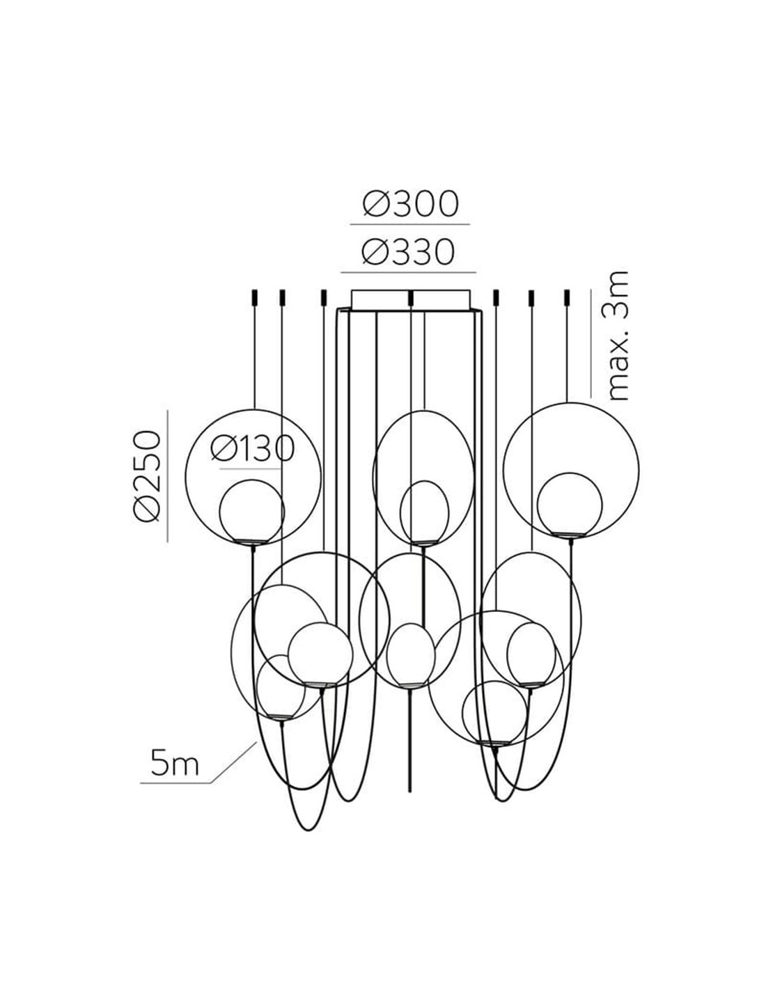 La suspension HALO offre un éclairage moderne et polyvalent. Disponible en finitions Or Technique et Noir - Opale, avec une puissance totale de 40W et 2960 lumens. Comprend un interrupteur coulissant pour régler la température de couleur.