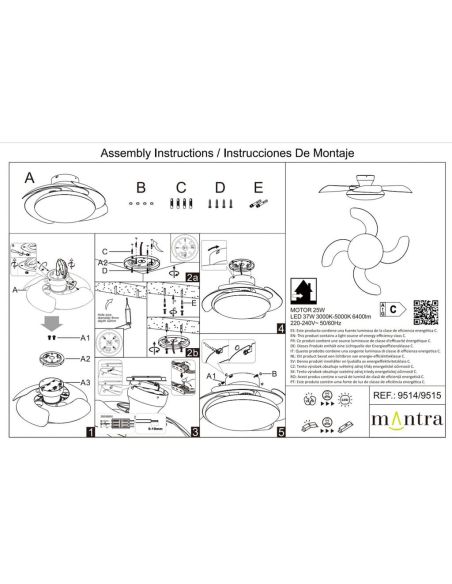 Ventilateur de plafond à pales rétractables, éclairage LED, modèle ACONCAGUA marron...