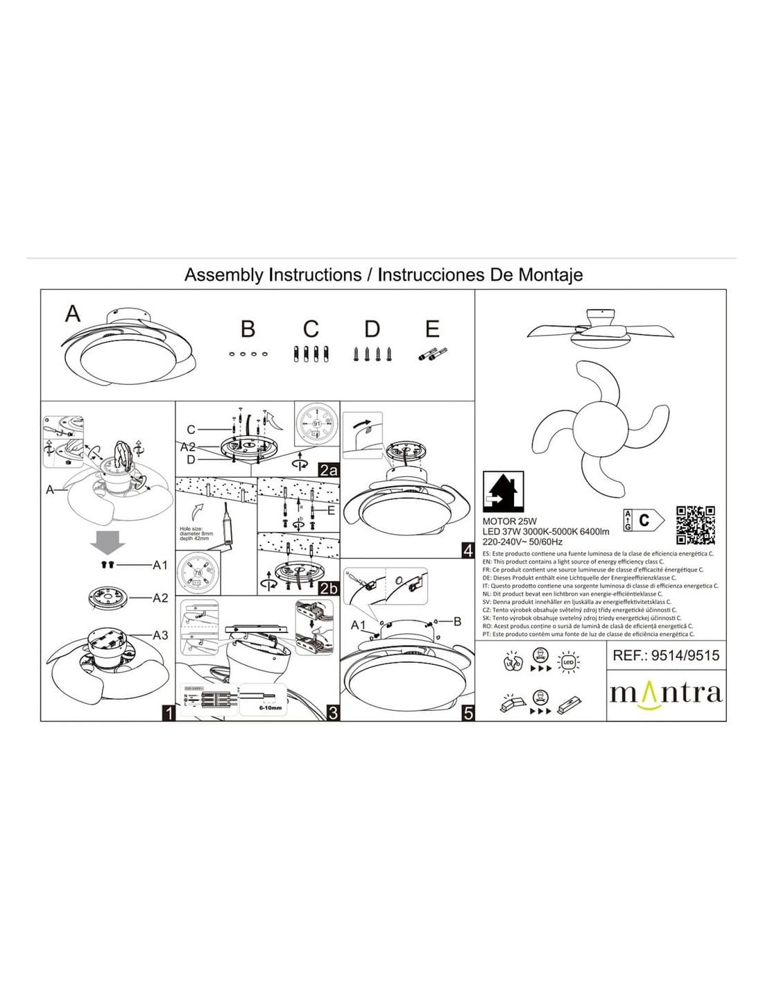 Ventilateur de plafond moderne à pales rétractables, LED ACONCAGUA blanc Ø1060mm 20W...