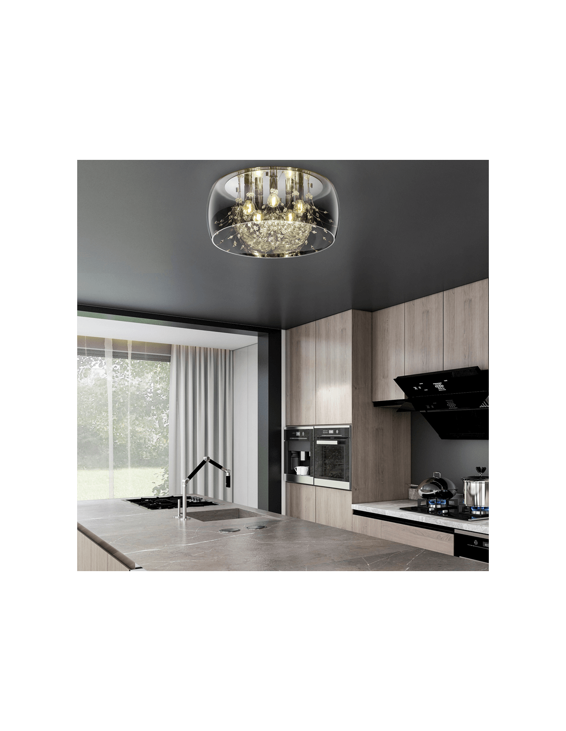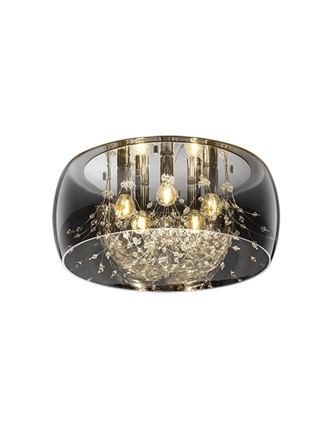 Plafonnier en verre fumé noir plusieurs lumières 3x E14 28W Crystel