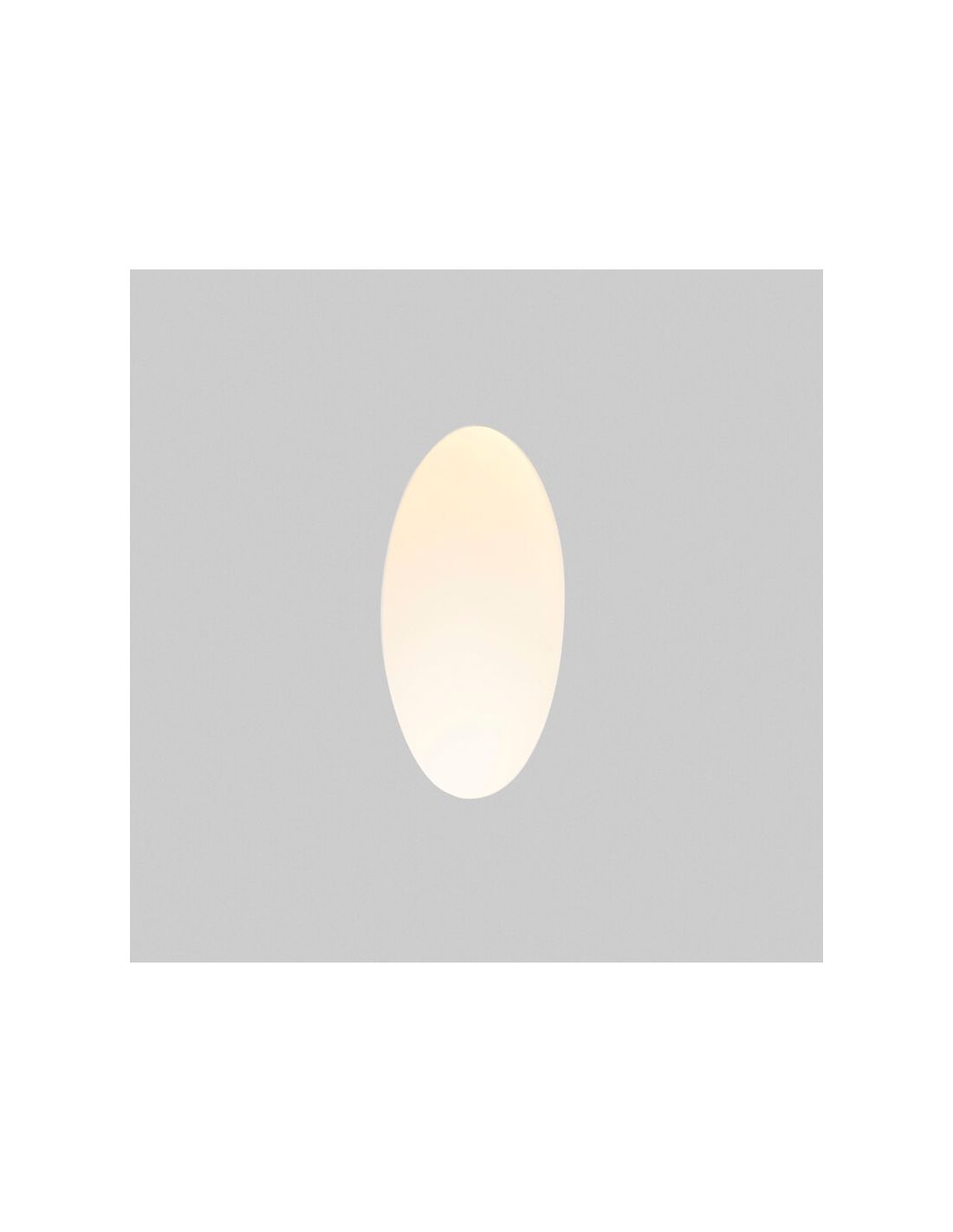 Lampe encastrée LED ovale blanche PLAS , en plâtre avec une finition mate. Lumière chaude 3000K , 1W, 63 lumens. Idéal pour les passages ou l'éclairage mural décoratif. Découpe d'installation 175x110 mm , réglable et avec source lumineuse incluse. Conducteur non inclus.