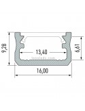 Profilé de type A en aluminium brut de haute qualité avec une finition noire conçu pour le montage en surface de bandes Led en surface. Ce profil en aluminium est idéal pour l'éclairage décoratif dans les meubles et les finitions intérieures à lumière indirecte.