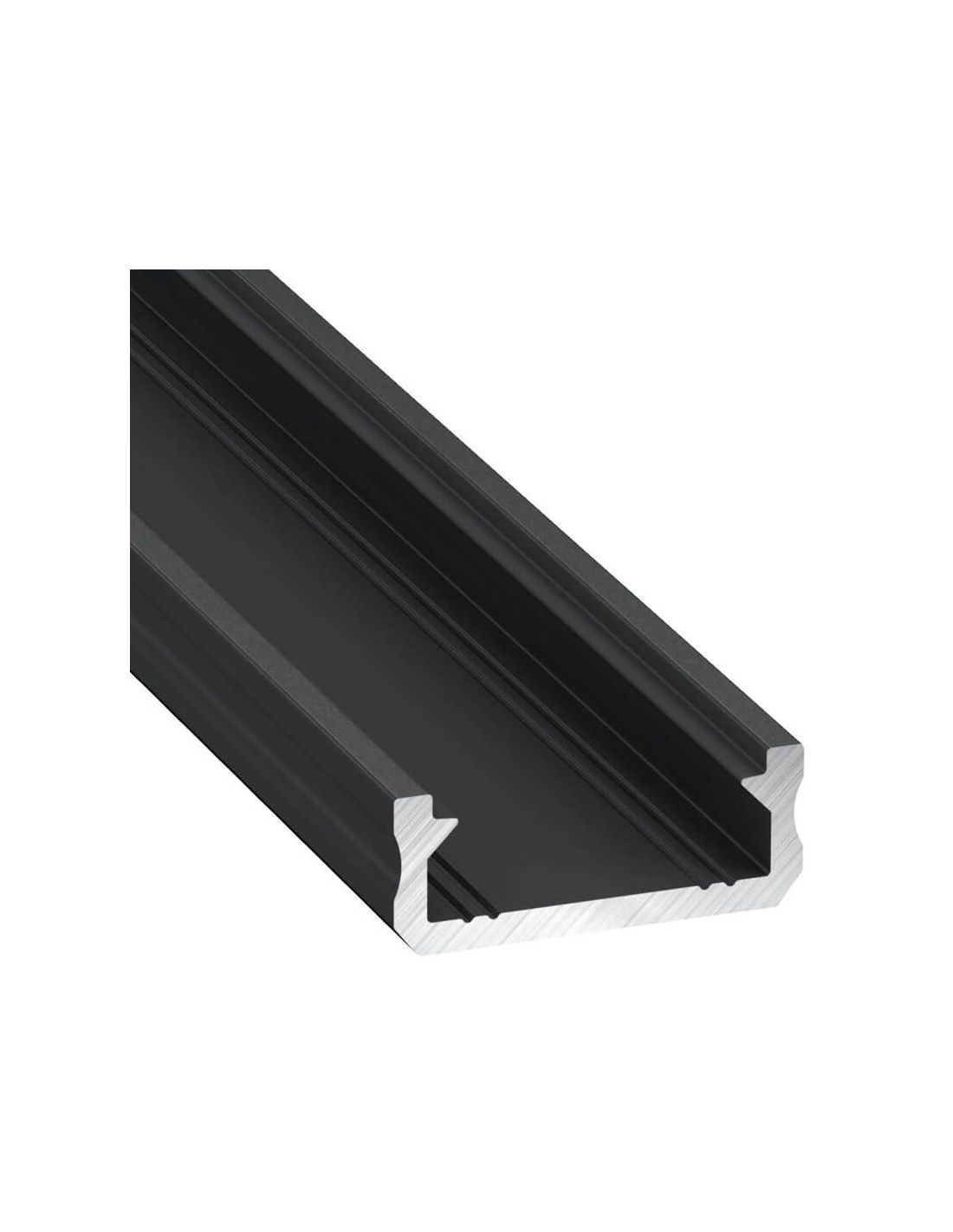Le profilé de surface Lumines Type D noir est l'un des modèles les plus polyvalents pour l'éclairage décoratif d'intérieur. Son profil bas de 6,3 mm en fait le choix idéal pour illuminer meubles, étagères et vitrines sans que son profil ne devienne visuellement imposant. La finition laquée noire apporte une touche d'élégance et se marie parfaitement avec des surfaces sombres ou crée un contraste sur des murs clairs.