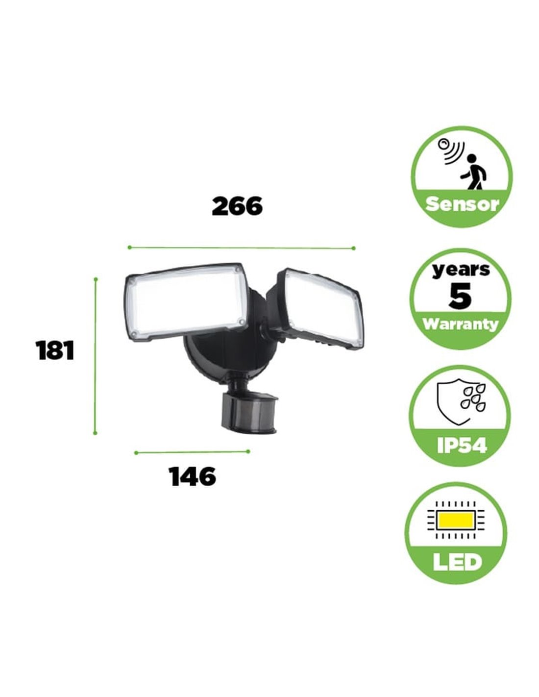 Le projecteur de sécurité à double réflecteur Lutec CHIMERA est conçu pour fournir un éclairage lumineux et clair dans les espaces extérieurs, améliorant ainsi la sécurité et la visibilité de votre maison ou de votre entreprise.