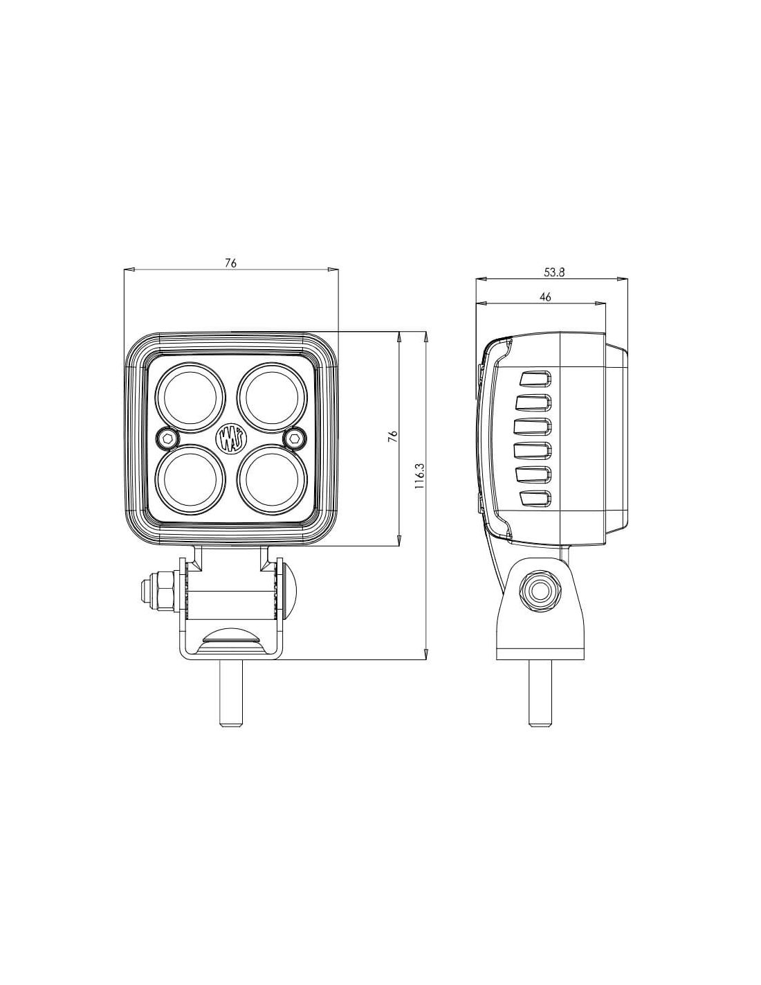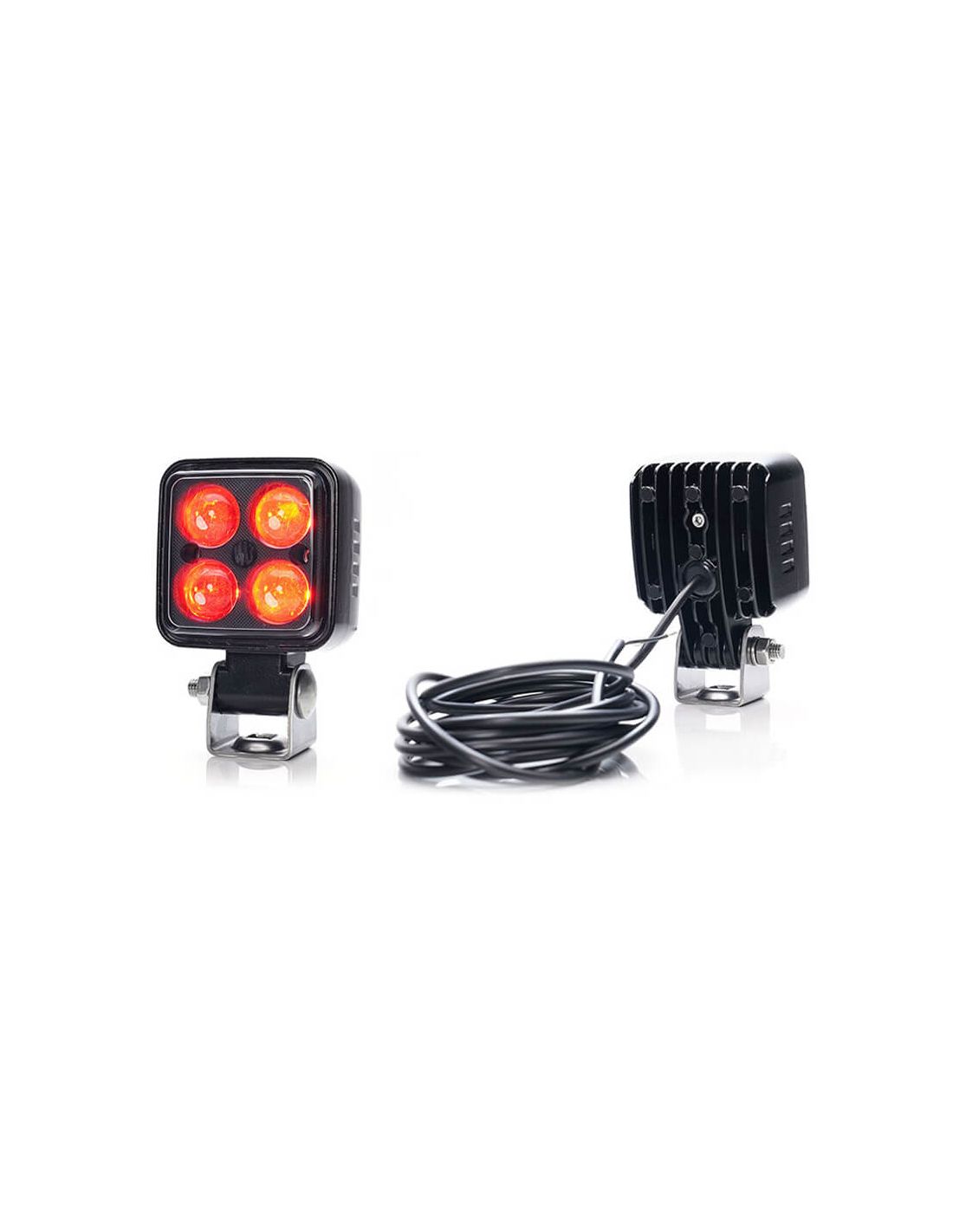 Le luminaire est certifié EMC R10 pour la compatibilité électromagnétique et dispose d'un câble de 2,5 mètres qui facilite l'installation même dans des endroits plus éloignés ou plus complexes. Il est recommandé d'installer le projecteur à un angle de 45 degrés , ce qui permet de marquer les zones de danger ou d'avertissement sans envahir le champ de vision de l'opérateur.