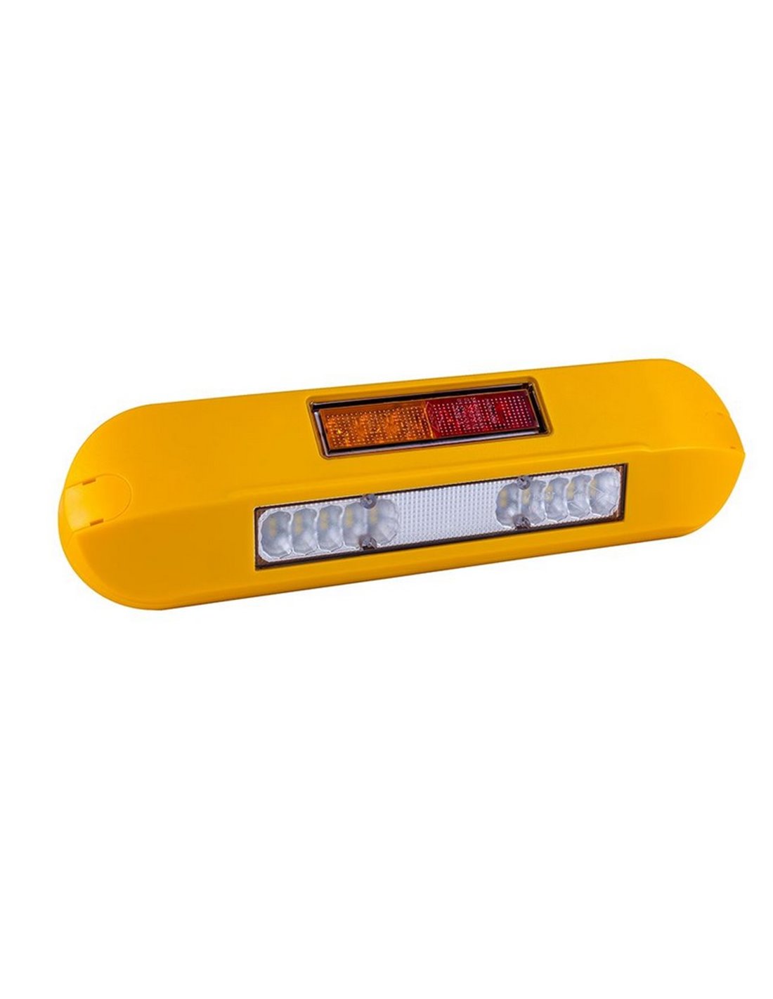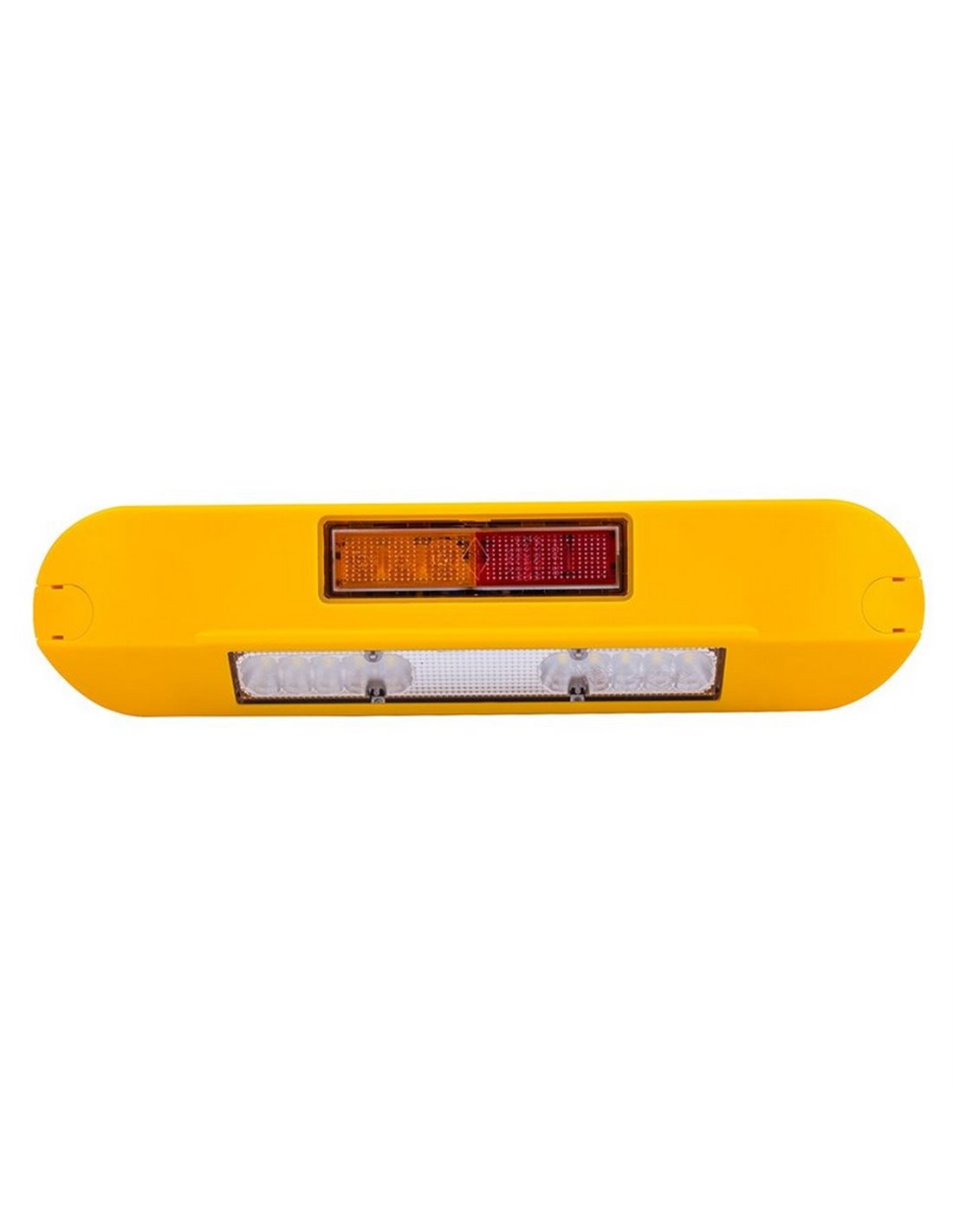 Les deux versions intègrent des feux de position , de freinage et de clignotants via des modules LED indépendants. Elles sont conformes aux normes d'homologation R1 , S1 , 2A et CEM , garantissant une compatibilité totale avec le système électrique du véhicule et permettant leur utilisation comme signalisation arrière homologuée sur les véhicules commerciaux et d'urgence. Le boîtier jaune assure une visibilité optimale pour les flottes municipales et les engins de chantier.