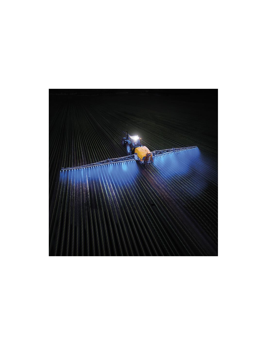 Contrairement à un projecteur blanc, la lumière bleue met en évidence le flux du produit et permet une plus grande précision et une sécurité accrue lors de la pulvérisation nocturne ou en soirée.