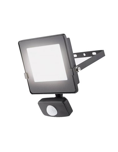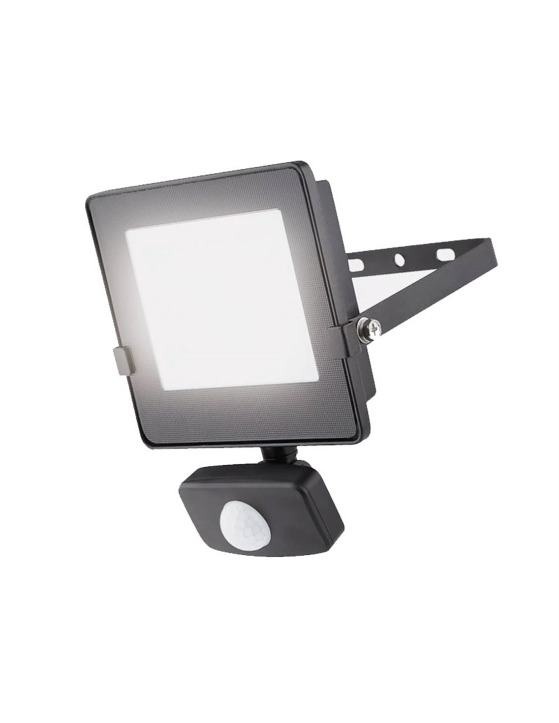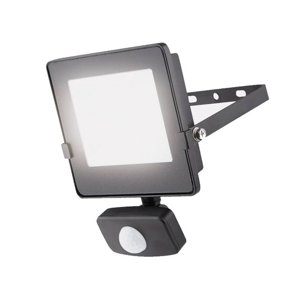Projecteur LED avec capteur PIR ECO FLOOD 10W , noir, avec 800 lumens et lumière 4000K. Idéal pour l'extérieur, avec protection IP65.