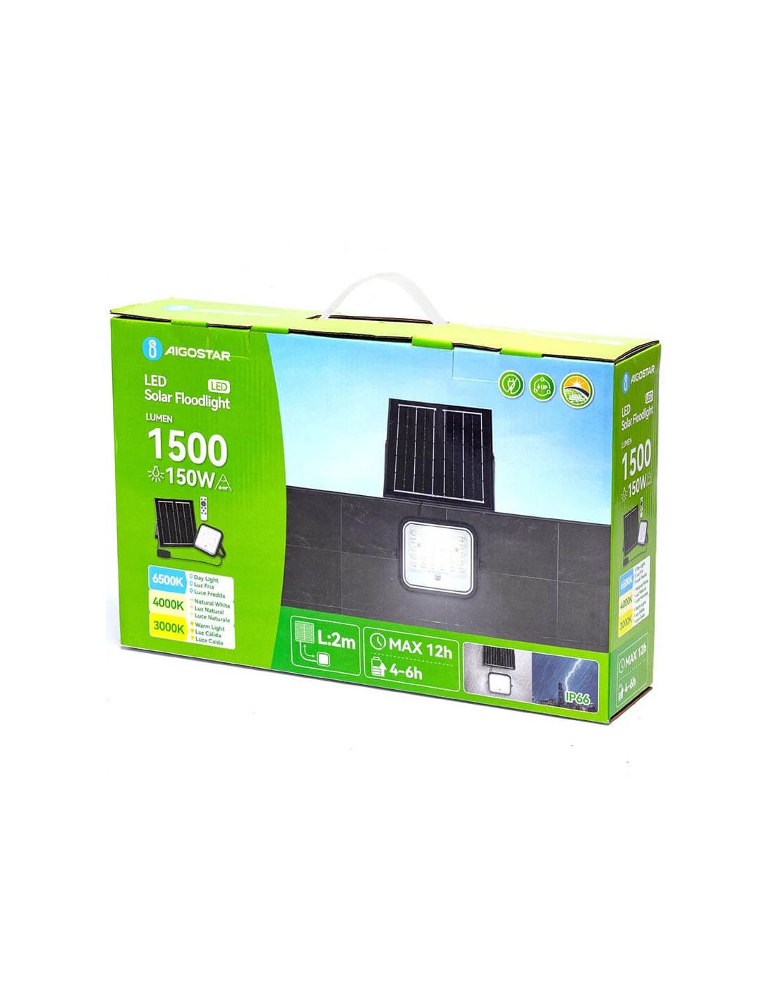 Projecteur solaire LED 150 W avec température de couleur réglable – Éclairage extérieur sans fil
