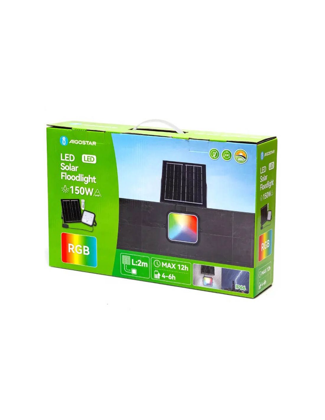 Projecteur solaire LED RGB 100 W avec panneau de 2 m – IP66 extérieur avec télécommande
