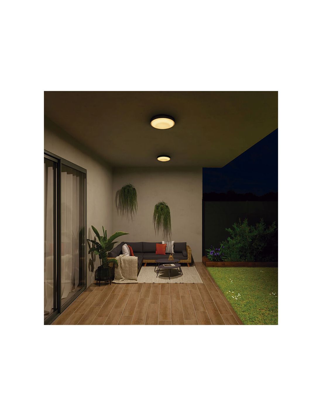 - Éclairage extérieur sur terrasses, balcons et porches