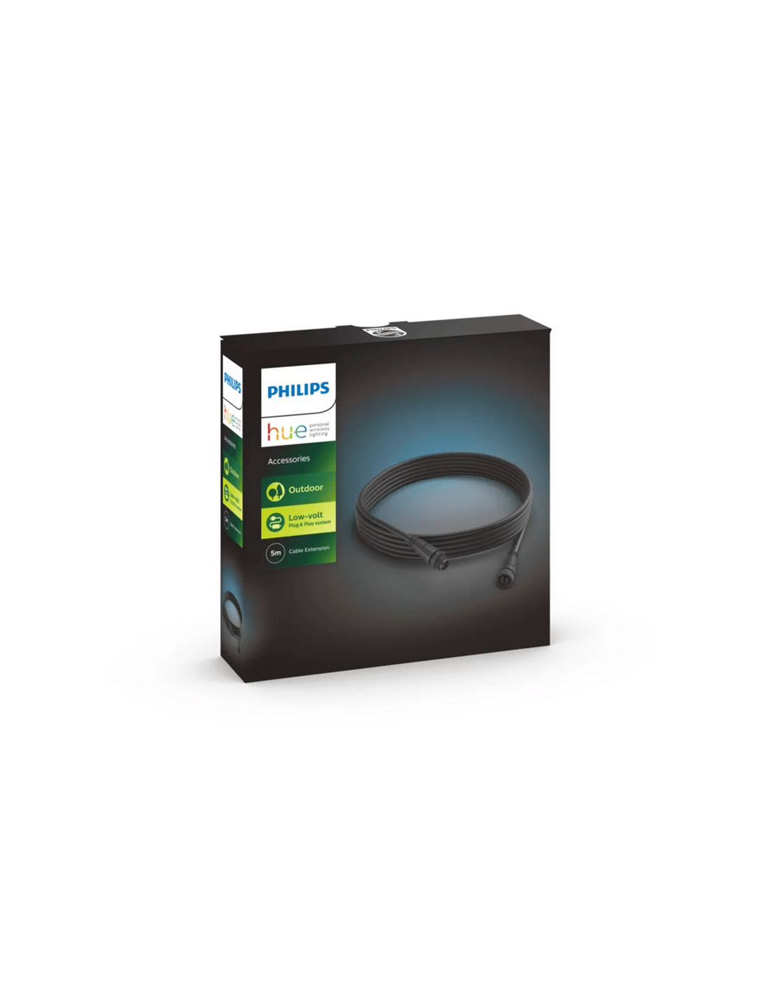 Augmentez l'espace entre l'alimentation électrique de votre éclairage extérieur Philips Hue jusqu'à 35 mètres avec l' extension de câble extérieur de 5 m en noir . Il a les dimensions suivantes : 2 cm de hauteur, 500 cm de longueur, 2 cm de largeur et un poids de 0,380 kg.